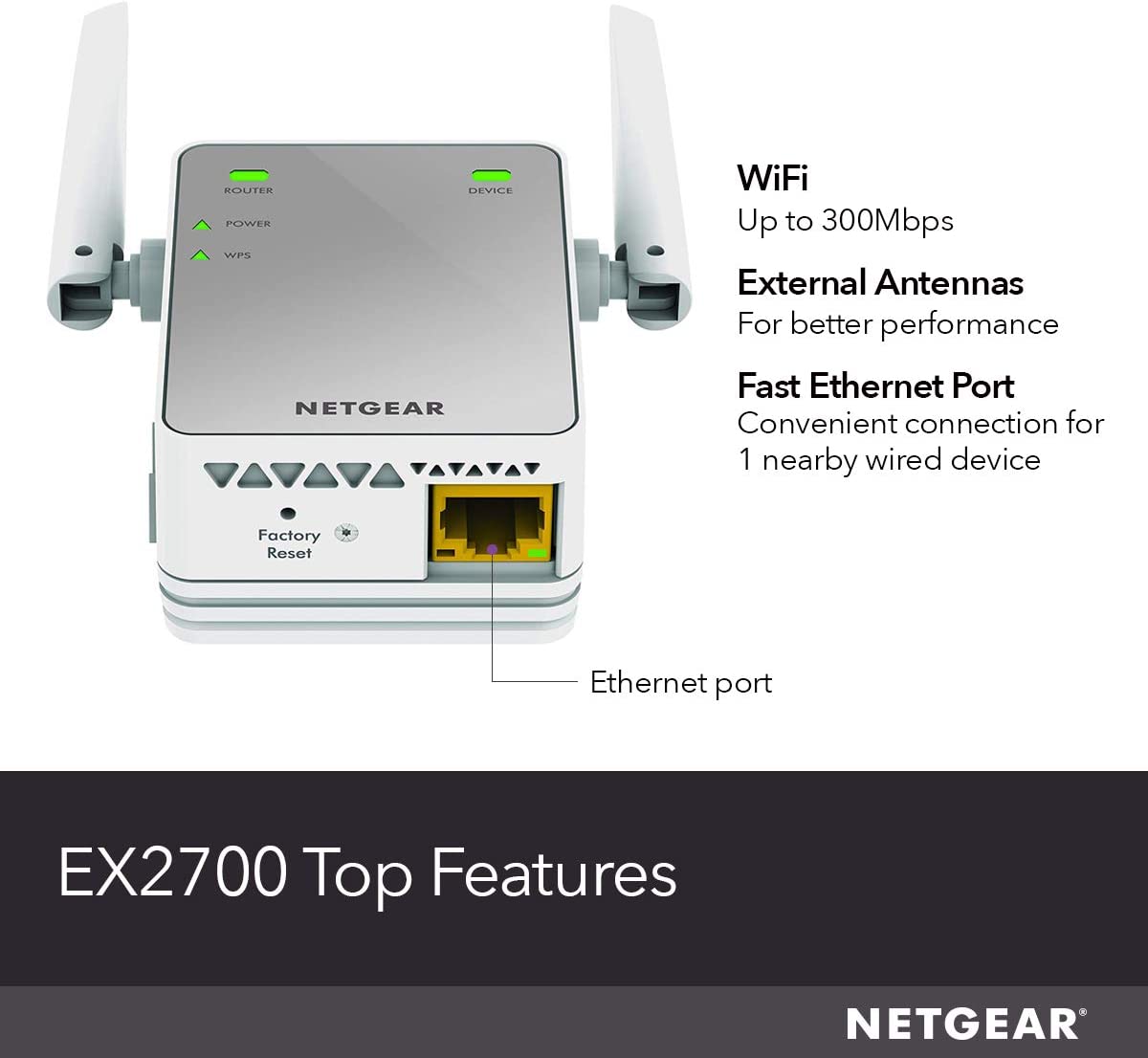 Say goodbye to Wi-Fi dead zones. Convenient, discreet and easy to install, extended Wi-Fi coverage is just an outlet away with this essentials edition extender. Boost your Wi-Fi for mobile devices and connect a wired device such as Smart TVs or game consoles. Boost your existing network range & speed, delivering Wi-Fi up to 300Mbps. External antennas provide better Wi-Fi coverage and higher speed, while the convenient wall-plug design saves space. It works with any standard Wi-Fi router & is ideal for keeping your mobile devices connected as you move throughout your home.