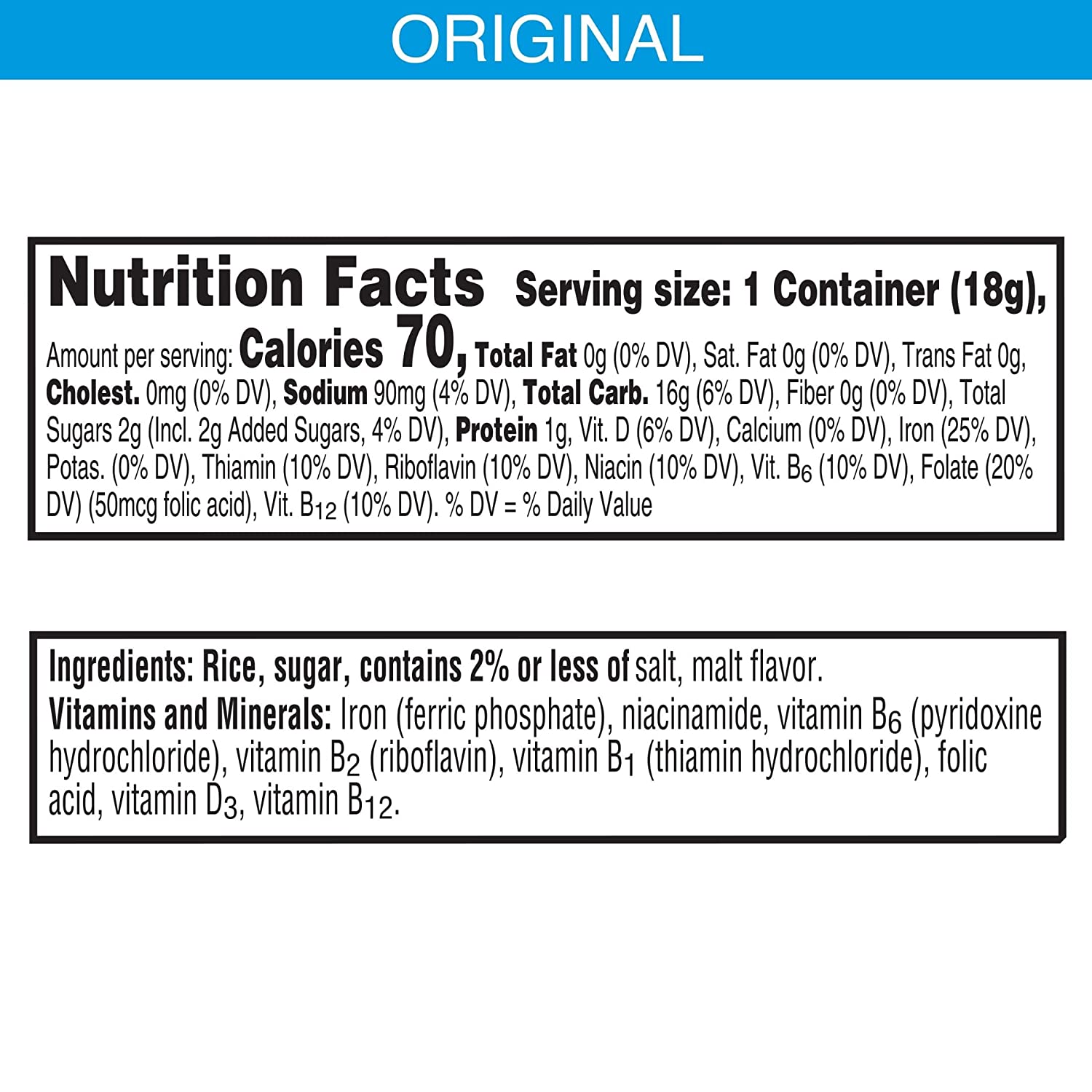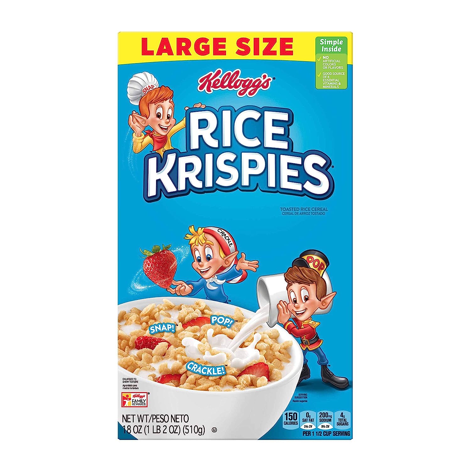 Whether you're enjoying it by the bowlful or through the delicious taste of The Original Treats recipe, Kellogg's Rice Krispies cereal makes it easy to bring a little magic to your day. Made with crispy oven-toasted puffed rice cereal, Rice Krispies are a satisfying and healthy way to start your day. A good source of 8 vitamins and minerals, Rice Krispies are also fat-free. Crafted to help bring energy to your mornings, our crispy cold cereal also makes for a sweet pick-me-up as an afternoon bite or late night treat. Just add your favorite dairy or nut-milk or enjoy as a crispy treat straight from the box. Decorate your bowl with strawberries, bananas, chocolate chips or your favorite toppings. Whip up a tasty batch of memories with your family by making The Original Treats recipe together. All you need are three simple ingredients: butter, marshmallows and Rice Krispies cereal. The possibilities are endless with Kellogg's Rice Krispies cereal.