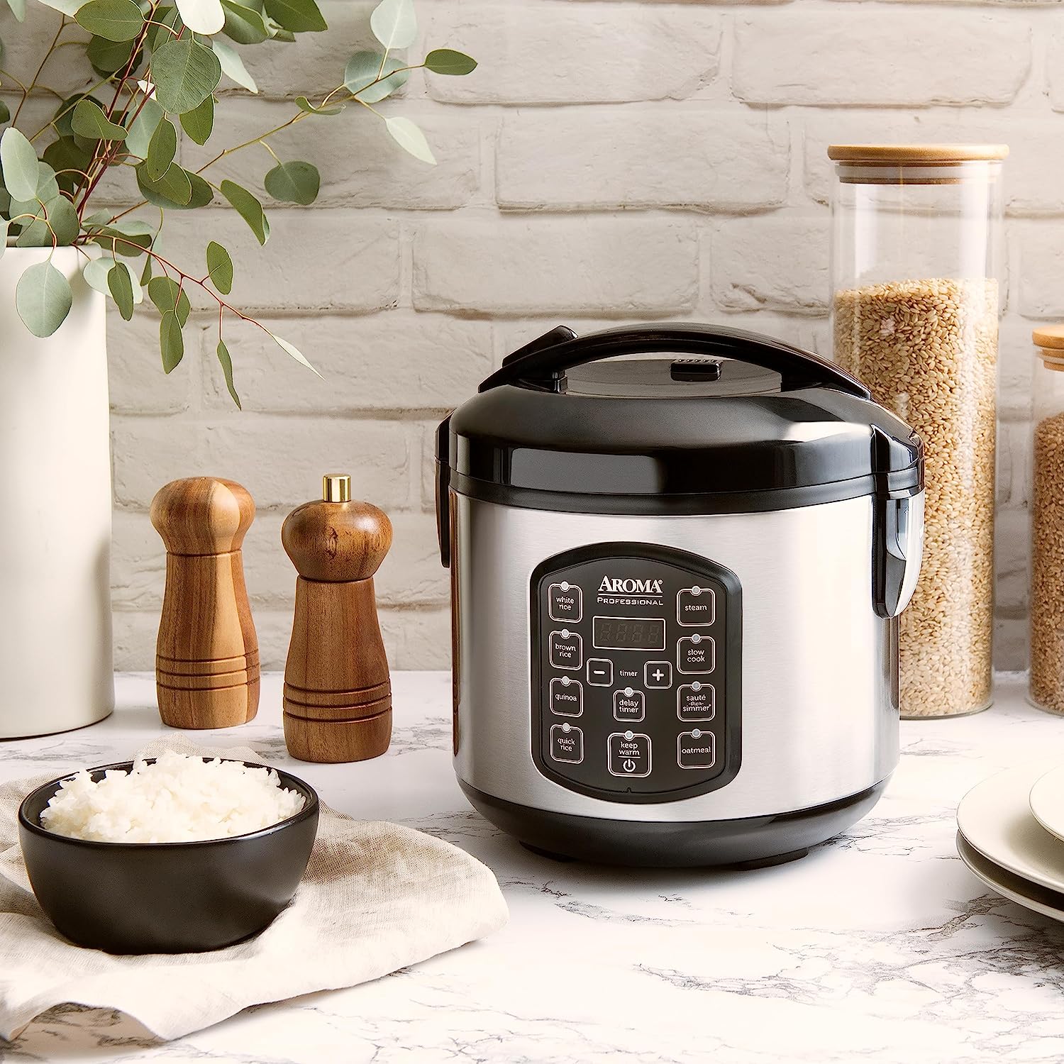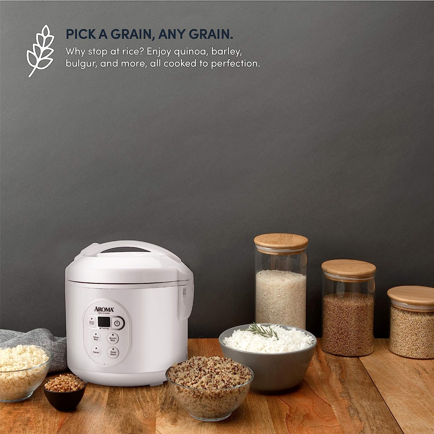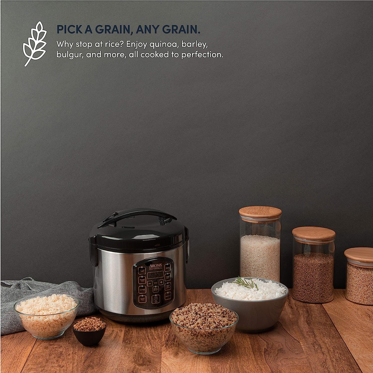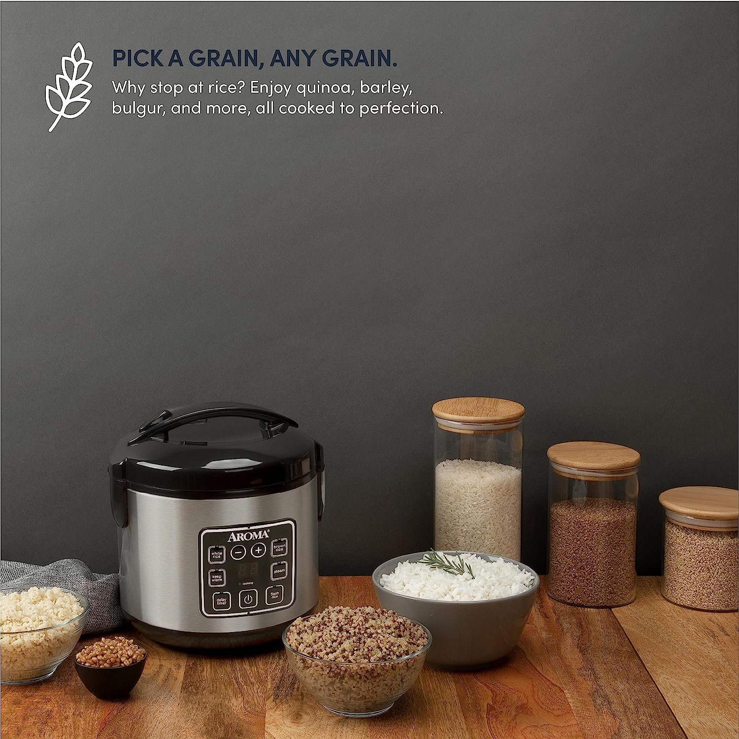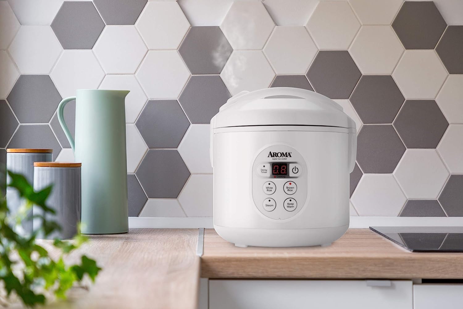 Let aroma do the cooking for you enjoy easy home cooking with the aroma 4-Cup (Uncooked)/8-Cup (Cooked) digital rice cooker & food steamer. Restaurant-quality rice. Healthy steamed meals. Delicious one-pot dishes. Prepare all this and more at the press of a button. Aroma takes the "cook" out of home cooking - turning kitchen time into your time. Help the kids with homework, get creative at play time, or pick up that novel you've been waiting to dive into. All while delivering hot, hearty and healthy meals the entire family will love. Digital convenience this convenient cooker's compact Capacity perfectly cooks 4-Cup (Uncooked)/8-Cup (Cooked) of any variety of rice with specialized functions for both white and Brown rice. Once the rice has finished, it will automatically switch to keep-warm so there's no need for monitoring or stirring. The steam tray allows for healthy steaming of meats and vegetables, even as rice cooks below. It's also suitable for oatmeal, chili, jambalaya, soups, and more. Delay timer the delay timer is designed for people on the go. Place rice in the cooker in the morning, set the delay timer to have rice ready when it's needed and come back to perfect rice ready to serve. Plus, no matter when rice is finished, the cooker will automatically switch to keep-warm for conveniently flexible meal planning. So, no matter what wrenches life throws in your schedule, you'll still come home to a quality meal ready when you are. Easy cleanup cleaning up is never fun. When the cooking is done, the inner cooking pot and all accessories remove for easy cleanup. It is non-stick coated