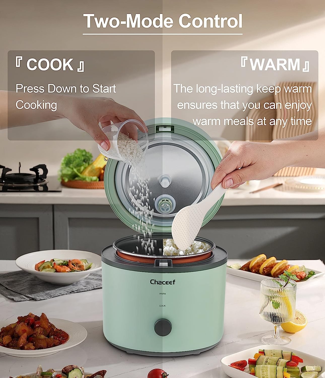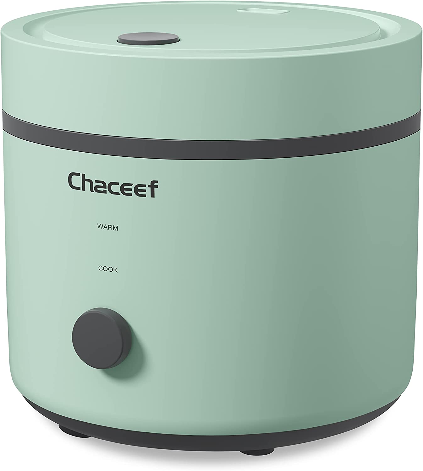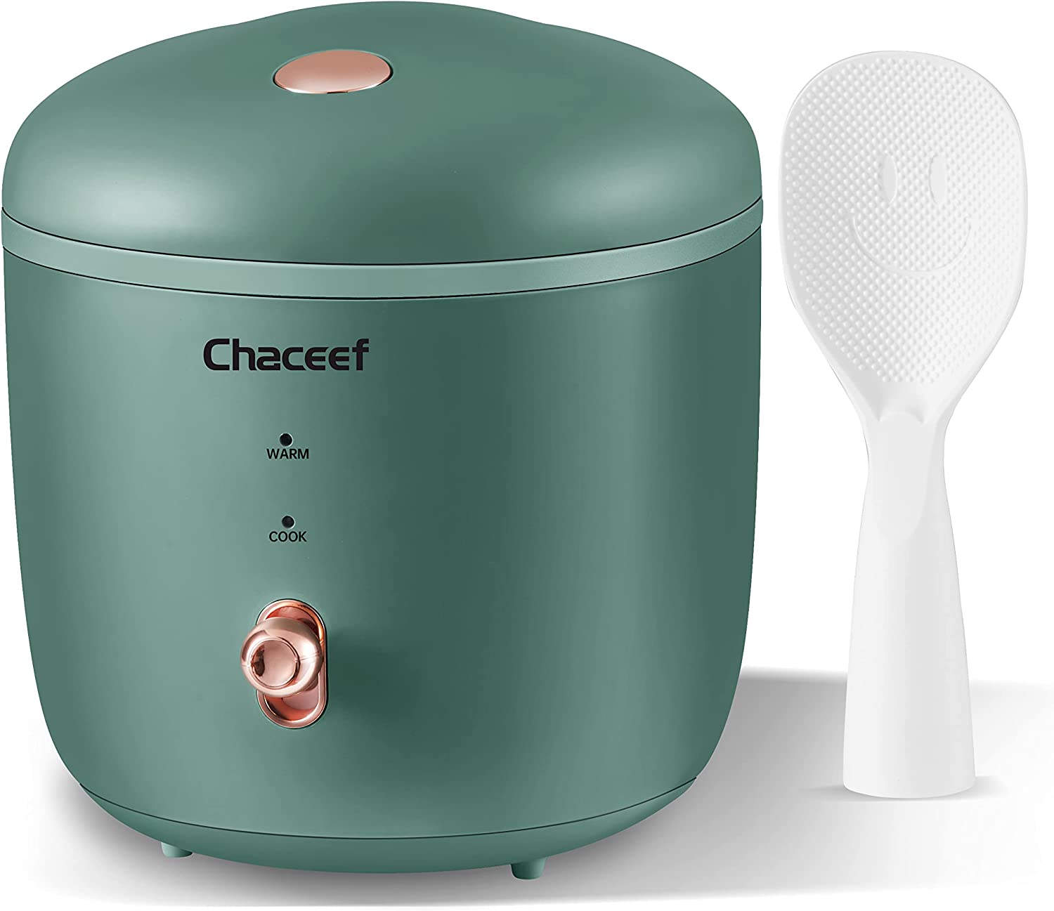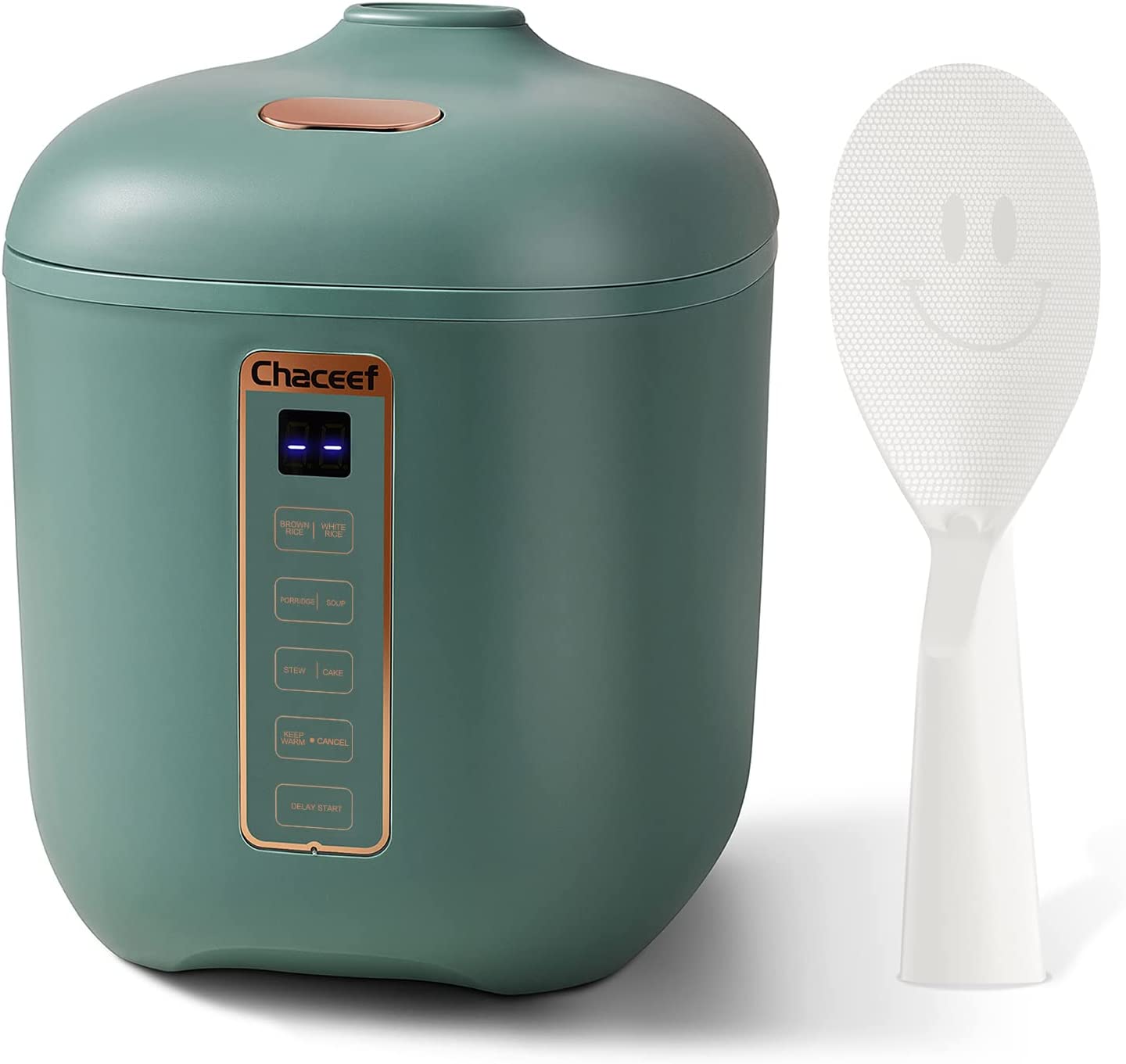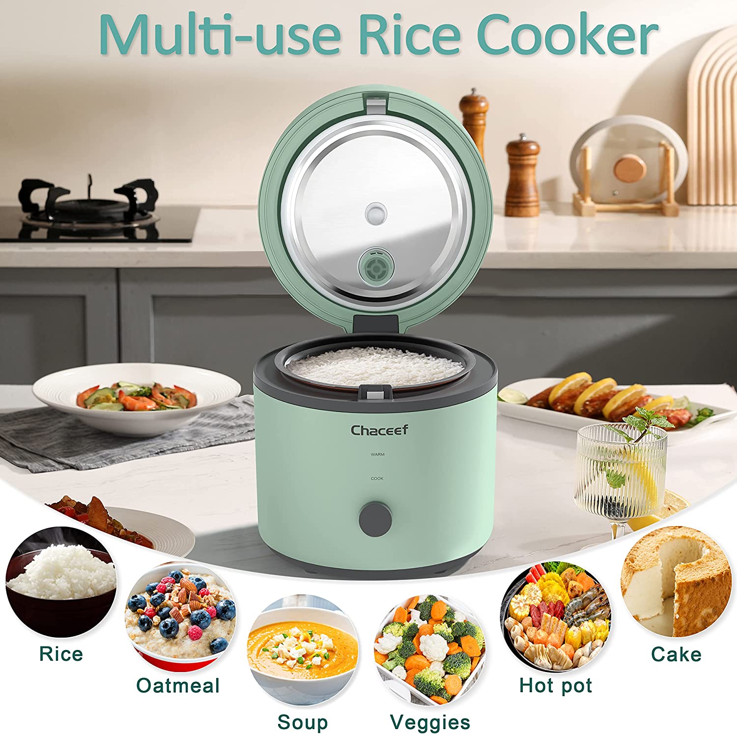 CHACEEF Mini Rice Cooker 2-Cups Uncooked, 1.2L Portable Non-Stick Small Travel Rice Cooker, Smart Control Multifunction Cooker with 24 Hours Timer Delay & Keep Warm Function, Food Steamer, Green