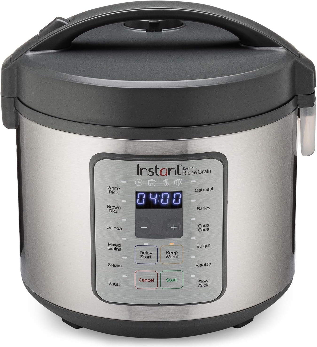 From the makers of Instant Pot, the Instant Zest Rice and Grain Cooker with 8-cup capacity is the perfect combination of value, convenience and cooking ease. Smart cooking programs help you save time and ensure dishes turn out exactly as you want them to. Fine-tune and save cooking times and temperatures that suit your family’s tastes. In addition to the smart program presets for white and brown rice, quinoa and oatmeal, you can cook any type of rice and grain fast and perfectly — from millet, farro and freekeh, to polenta, barley, rice pudding and more. Even hearty grains like spelt and wheat berries, which typically require lots of cooking time. More than just a rice cooker, the Instant Zest quickly steam veggies, fish, dumplings, tamales, cabbages, wontons and more with ease. Bright, bold display and status indicators let you know exactly where your food is in the cooking process. Delay start and keep warm functions make sure your rice, grains and more are ready when you are.