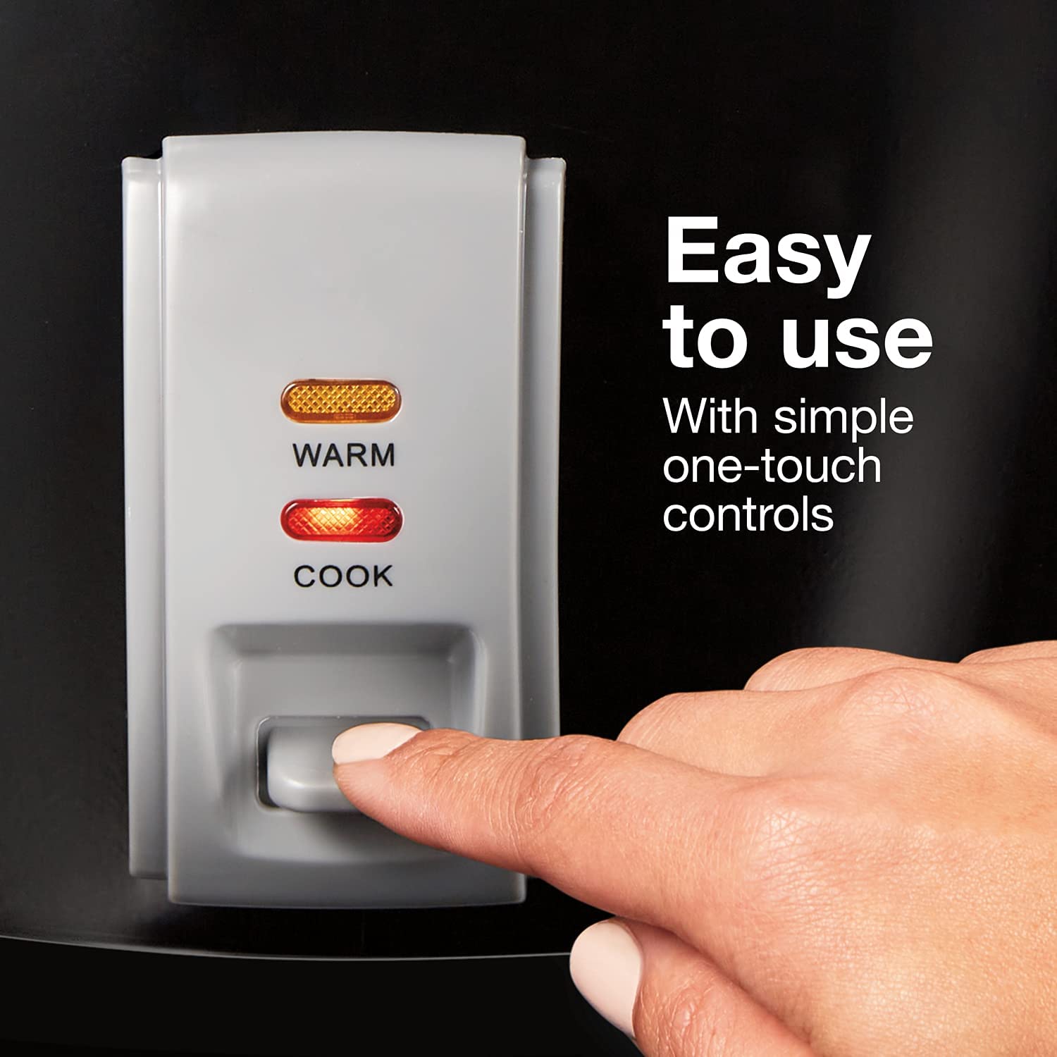 • EASY TO USE WITH ONE-TOUCH CONTROLS: Just press one button to cook rice, steam vegetables and more. The electric rice cooker automatically switches to warm when cooking is complete. No watching needed.