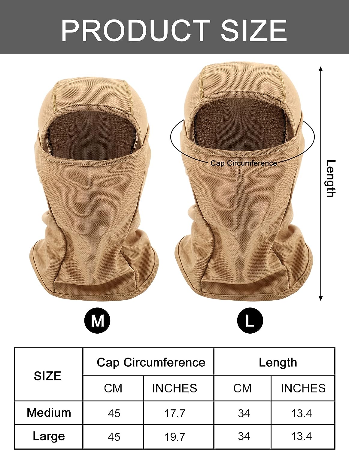Our balaclava applies to cold or sunny weather, provides cover and comfort with lightweight and thin material, suitable for all outdoor activities, including motorcycle, skiing, hunting, tactical training, climbing and so on.