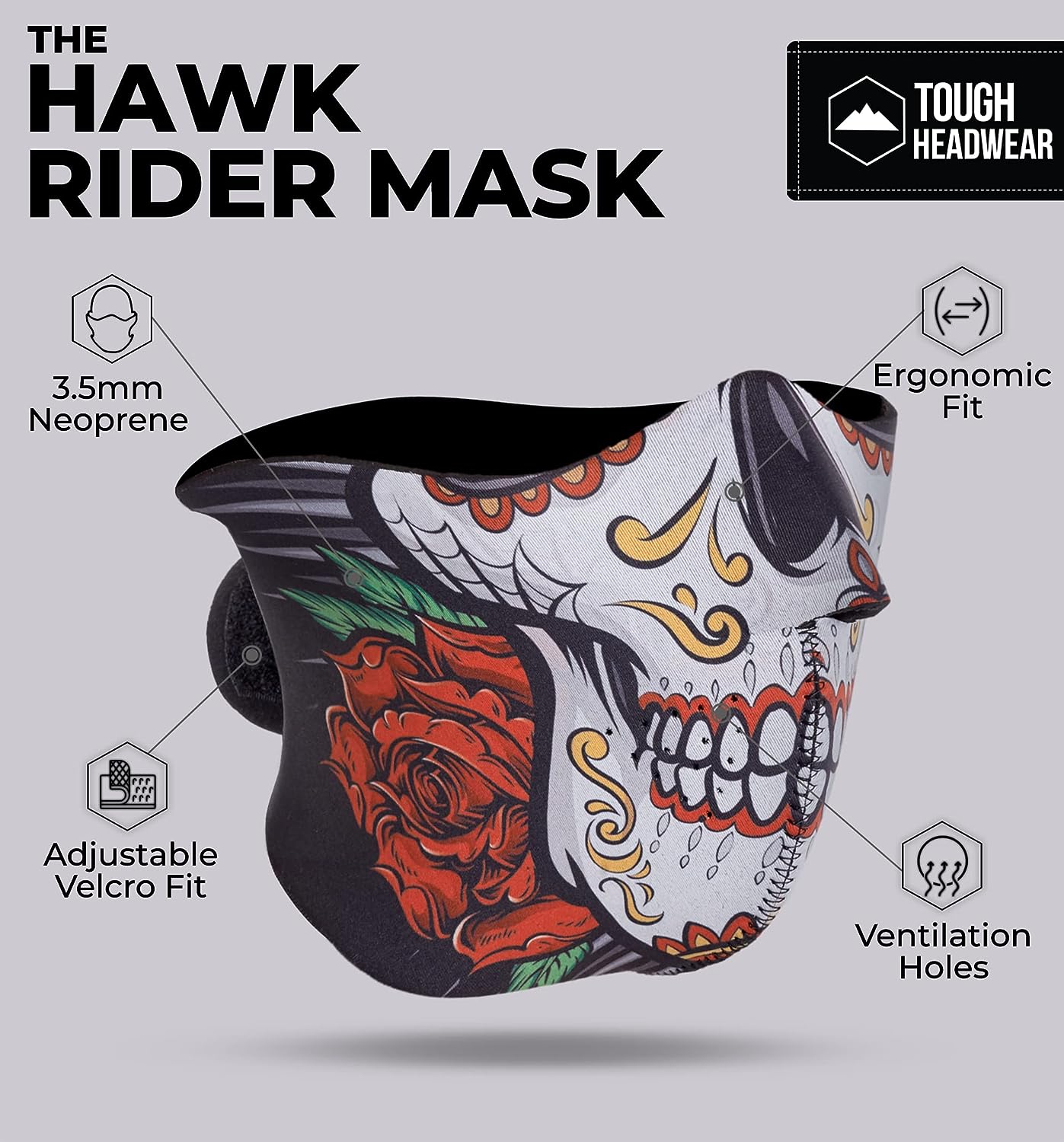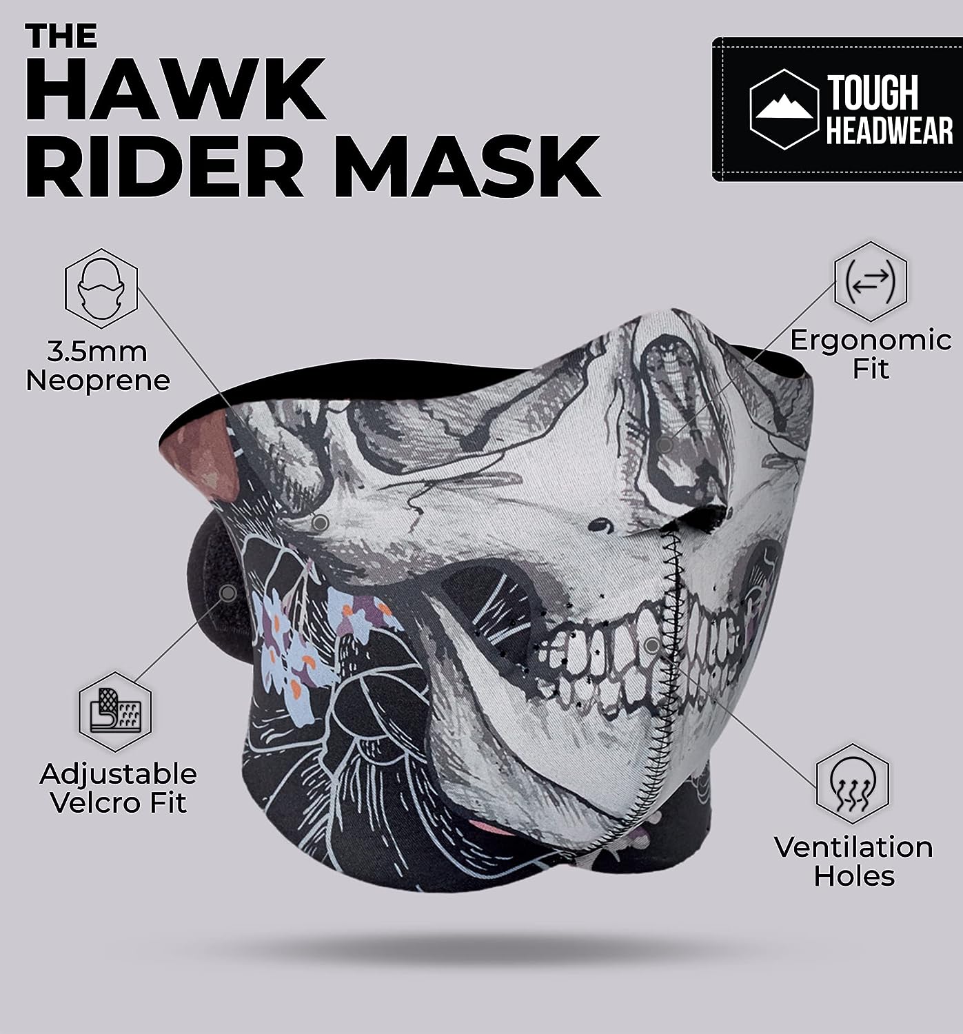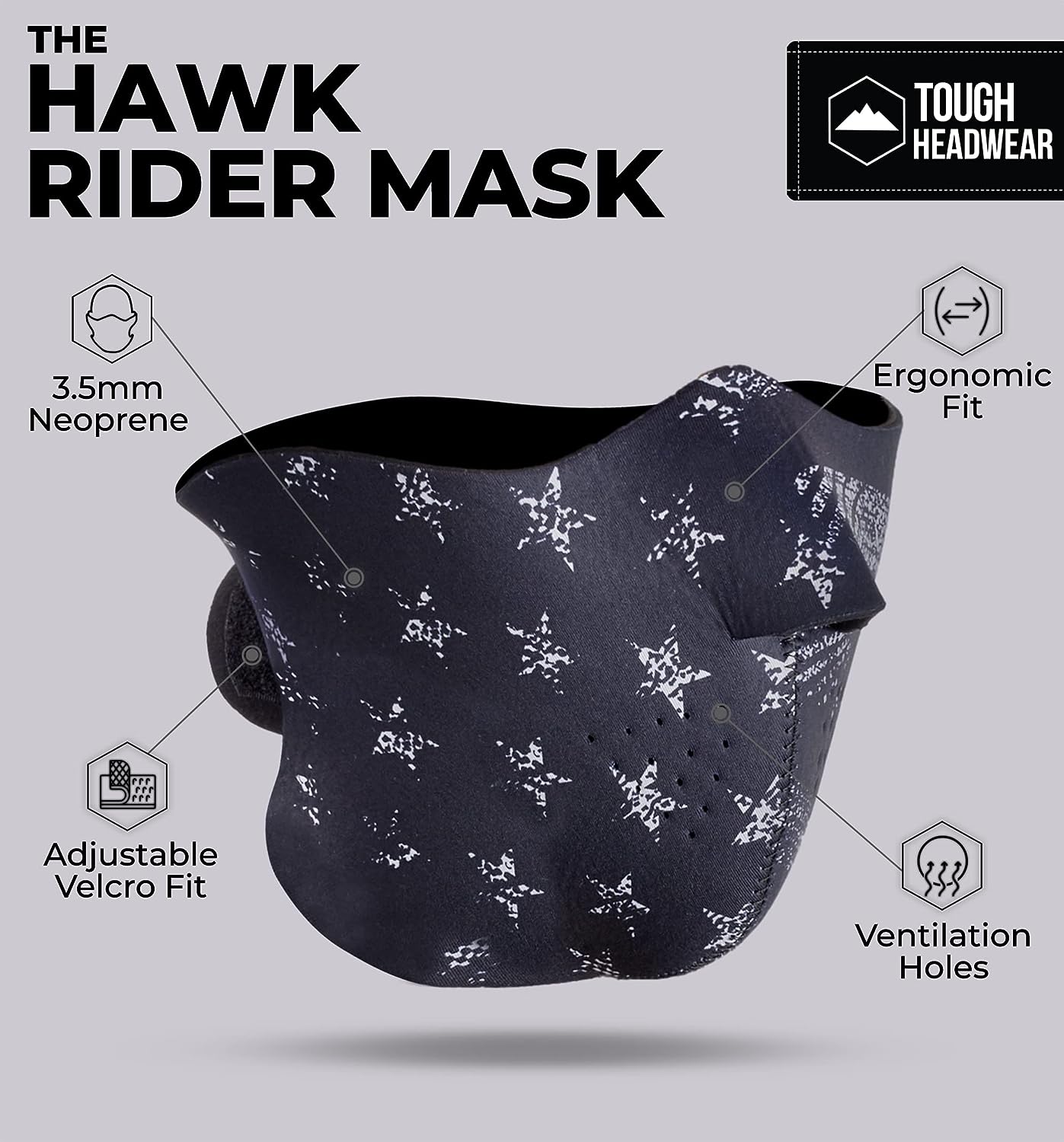 • COMFORT TO-GO: When you’re focused on the road, the last thing you need to worry about is comfort. With a low profile, ergonomic fit, the Hawk Rider Mask is comfortably snug, easy to wear, and has an adjustable velcro closure, so you’re sure to find the perfect fit.