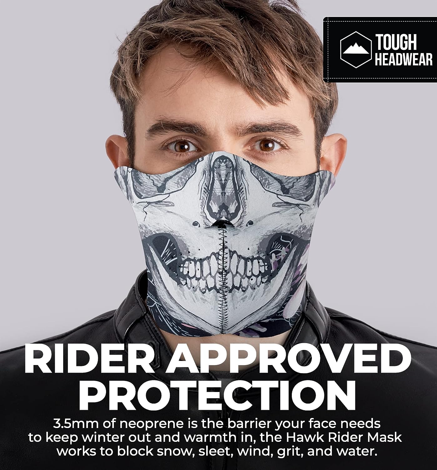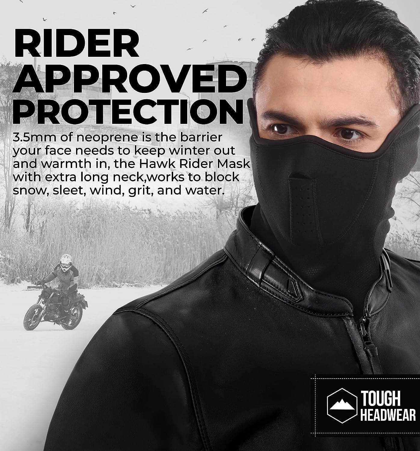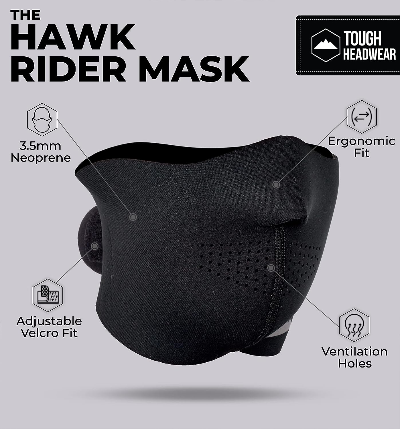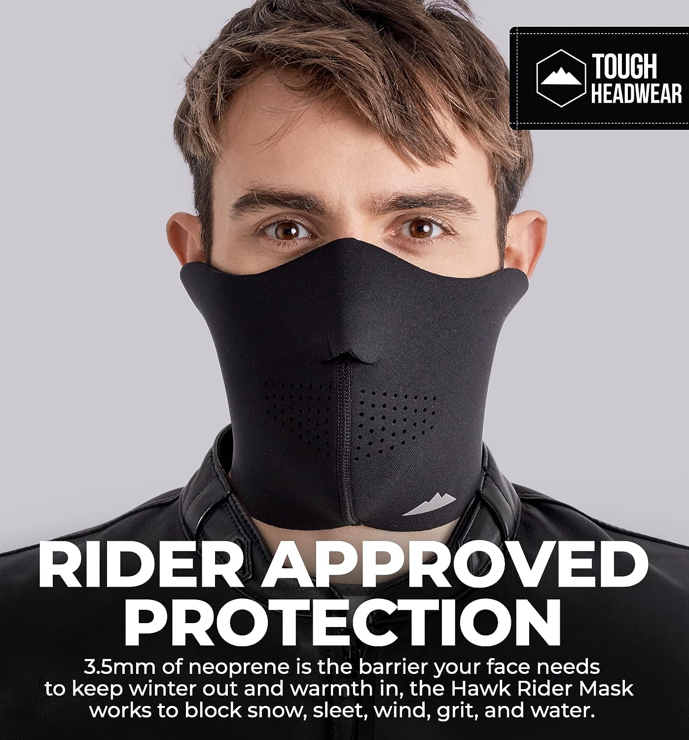 • FOG-FREE VISIBILITY: A no fog winter face mask that does it’s job. Fit with ventilation surrounding the nose and mouth, the Hawk Rider Mask is breathable so you can keep it on all day — no moisture retention, and no fogging up your glasses or helmet when you hit the roads, trails, or pavement. Finally, motorcycle face masks for men that do what they’re supposed to!