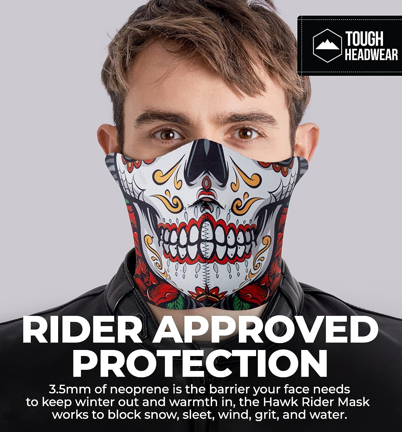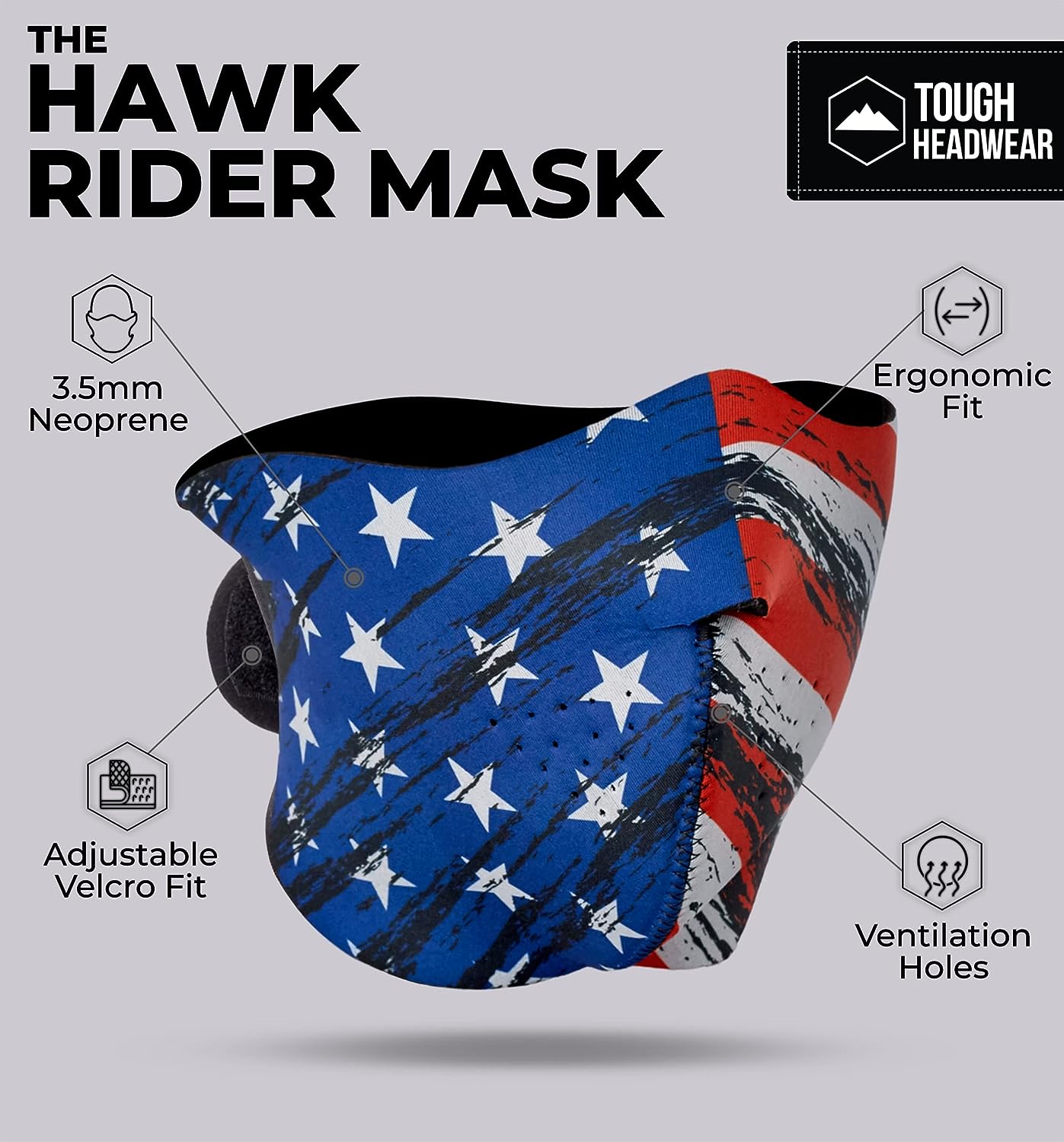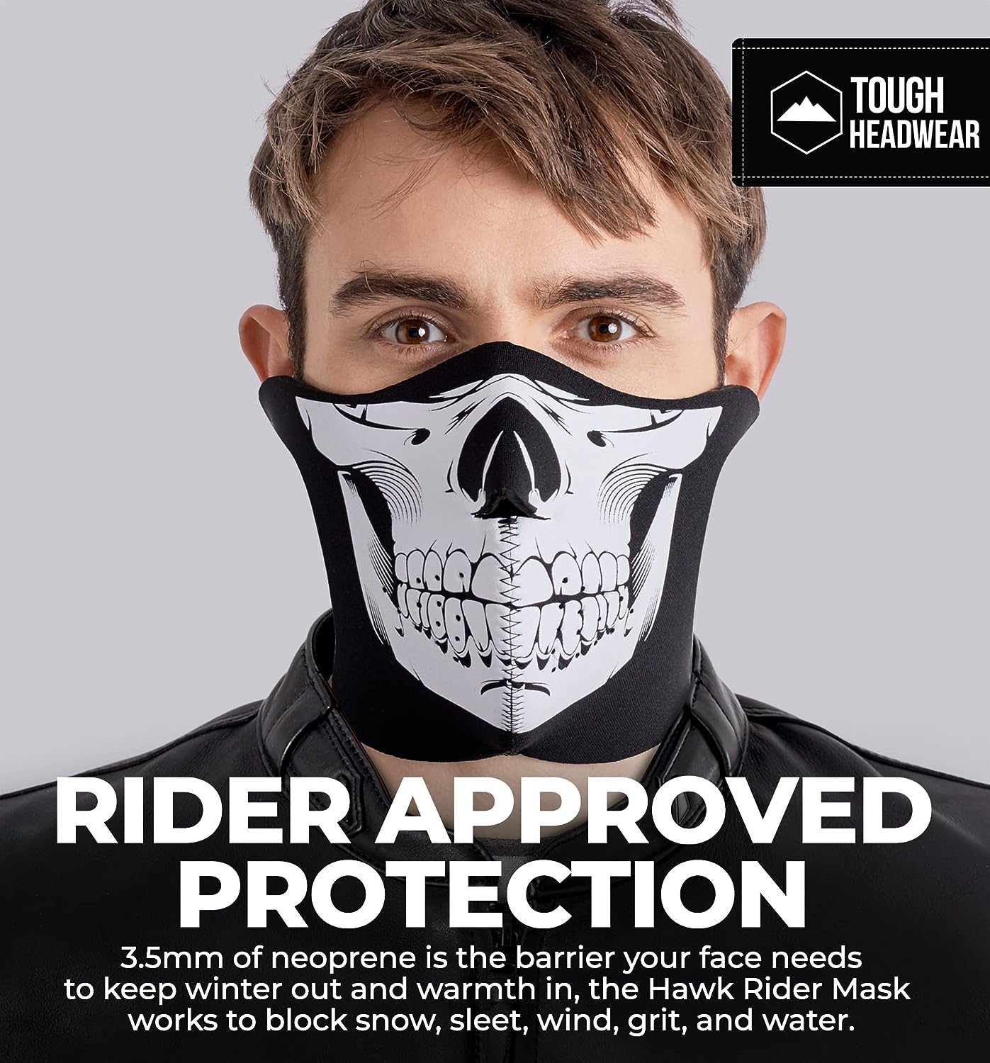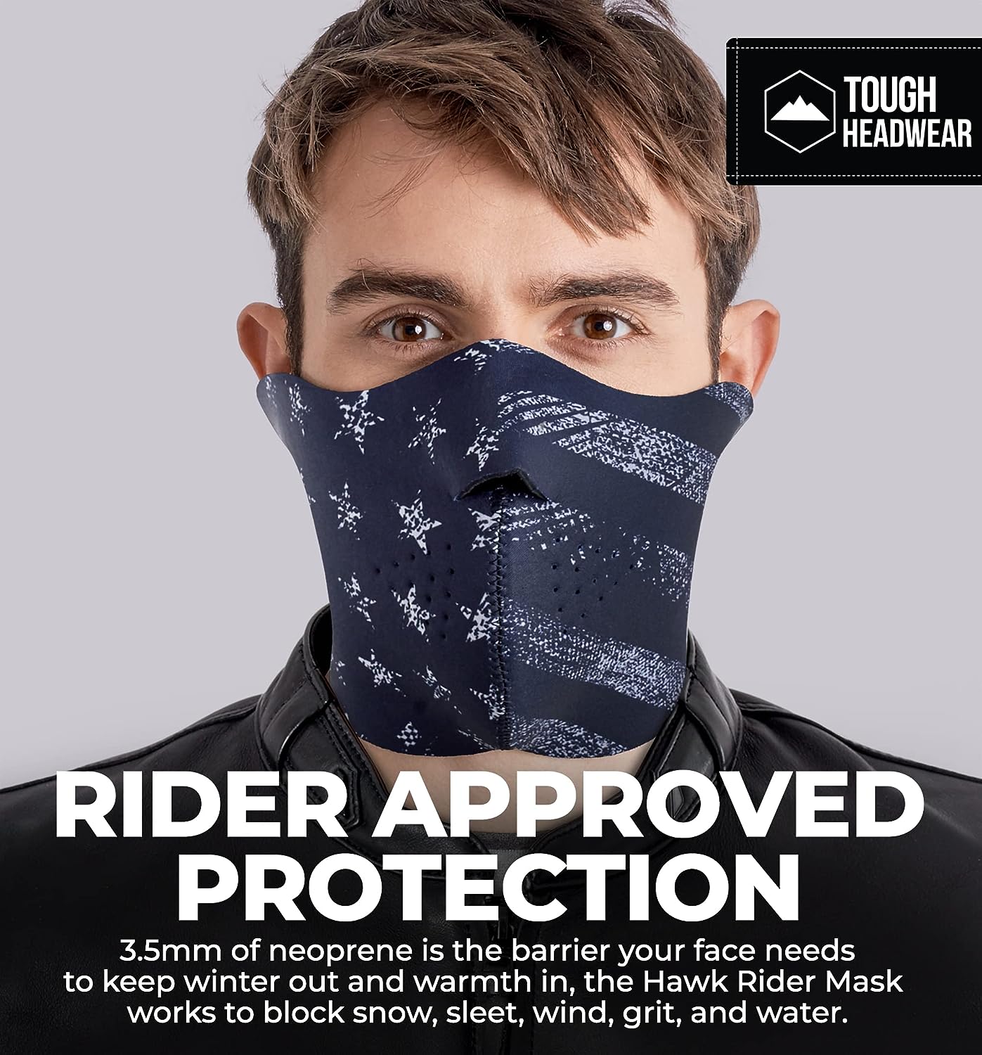 • FOG-FREE VISIBILITY: A no fog winter face mask that does it’s job. Fit with ventilation surrounding the nose and mouth, the Hawk Rider Mask is breathable so you can keep it on all day — no moisture retention, and no fogging up your glasses or helmet when you hit the roads, trails, or pavement. Finally, motorcycle face masks for men that do what they’re supposed to!