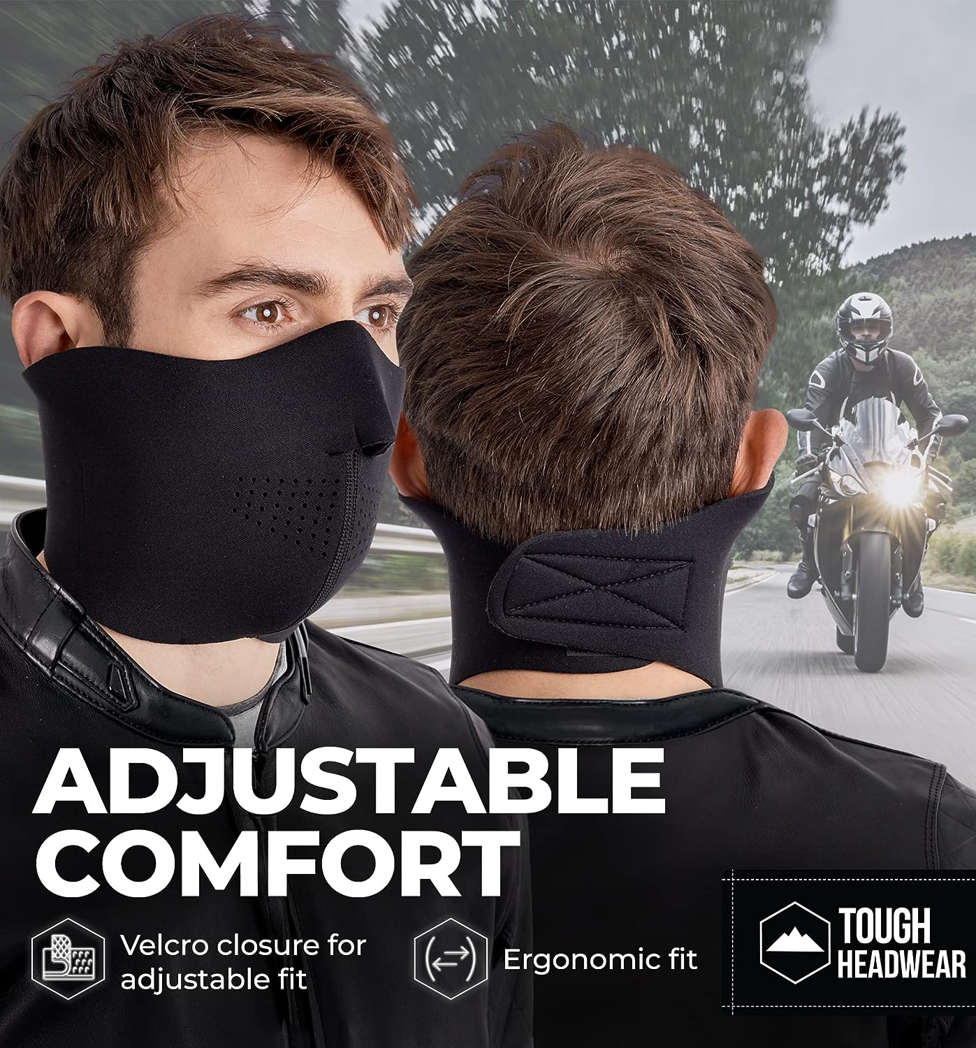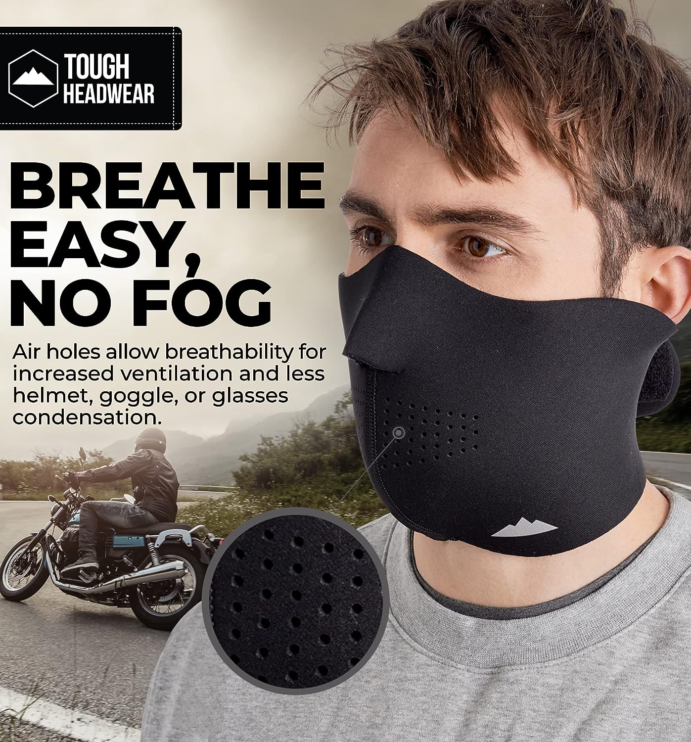 Neoprene Half Face Mask for Cold Weather - Half Ski Mask with Velcro Strap - Half Winter Face Mask - Motorcyle Masks for Men