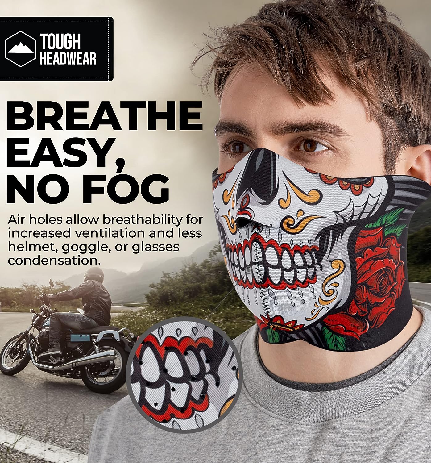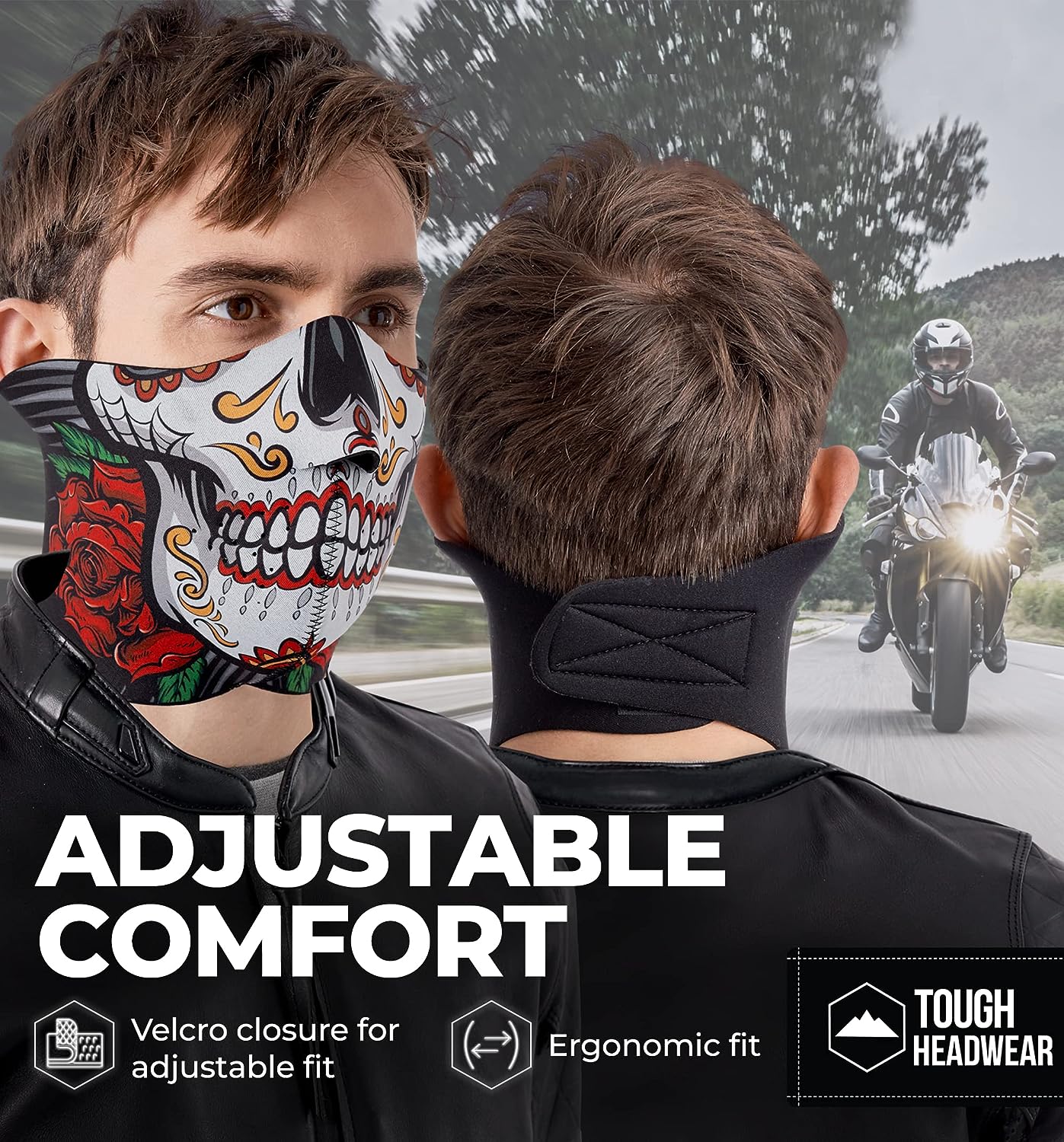 • HELMET-FRIENDLY: Thanks to its close-fitting profile, our motorcycle mask is perfect to wear comfortably under all types of helmets and hats —motorcycling, outdoor work, skateboarding, biking, and ATVing here we come.