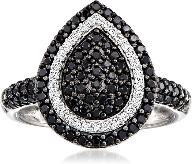 Ross-Simons 1.60 ct. t.w. Black Spinel and .60 ct. t.w. White Zircon Teardrop Ring in Sterling Silver
