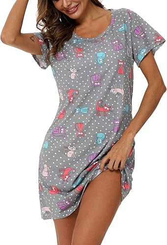 ENJOYNIGHT Womens Nightgowns Cotton Sleepwear Plus Size Sleep Shirt Short Sleeve Nightshirt Print Sleepshirt