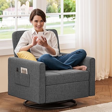 Relaxing Dark Grey Rocking Chair | Glider, 360ï� Swivel Design, Storage Pockets | Rocking Chair, Sofa Chair | Upgraded Width, High Backrest
