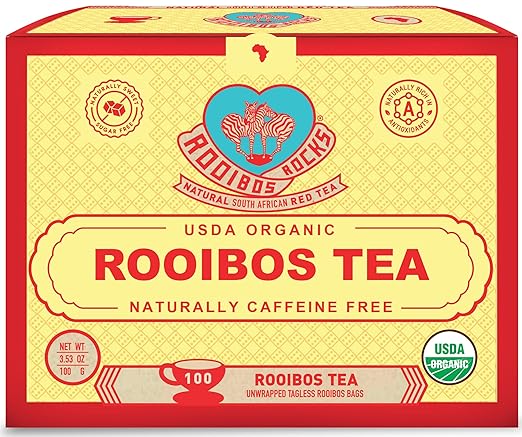 Organic Red Rooibos Tea Bags 100 Count - Naturally Sweet Herbal Tea Safe for Children & Pregnant Women - Low Tannin, Premium South African Caffeine Free Tea Bags Sustainably & Ethically Farmed