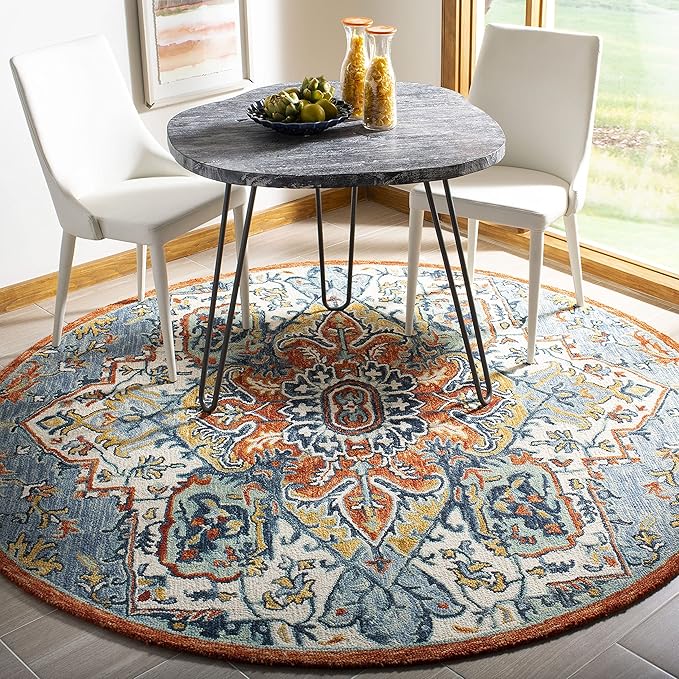SAFAVIEH Aspen Collection 7' Round Blue / Rust APN312A Handmade Boho Wool Area Rug