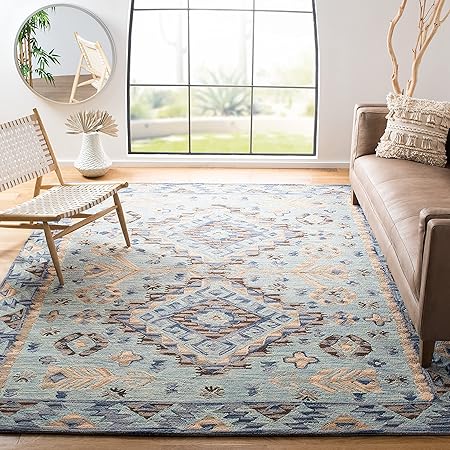 SAFAVIEH Aspen Collection Area Rug - 10' x 14', Blue & Beige, Handmade Boho Wool, Ideal for High Traffic Areas in Living Room, Bedroom (APN504A)