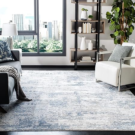 SAFAVIEH Amelia Collection Area Rug - 6' x 9', Ivory & Blue, Modern Abstract Design, Non-Shedding & Easy Care, Ideal for High Traffic Areas in Living Room, Bedroom (ALA700A)