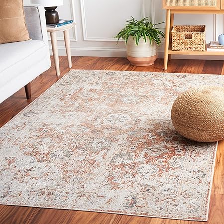 SAFAVIEH Baltimore Collection Area Rug - 4' x 6', Ivory & Rust, Shabby Chic Design, Machine Washable, Ideal for High Traffic Areas in Living Room, Bedroom, Dining (BAL852A-4)