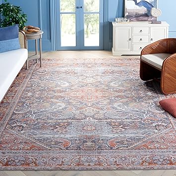 Safavieh Tucson Collection Area Rug - 8' x 10', Grey & Rust, Persian Design, Non-Shedding Machine Washable & Slip Resistant Ideal for High Traffic Areas in Living Room, Bedroom (TSN125F)
