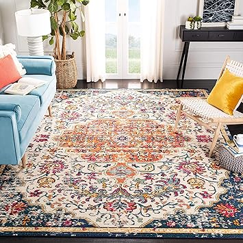 SAFAVIEH Madison Collection 11' Square Ivory / Orange MAD447A Boho Chic Medallion Distressed Non-Shedding Living Room Bedroom Dining Home Office Area Rug