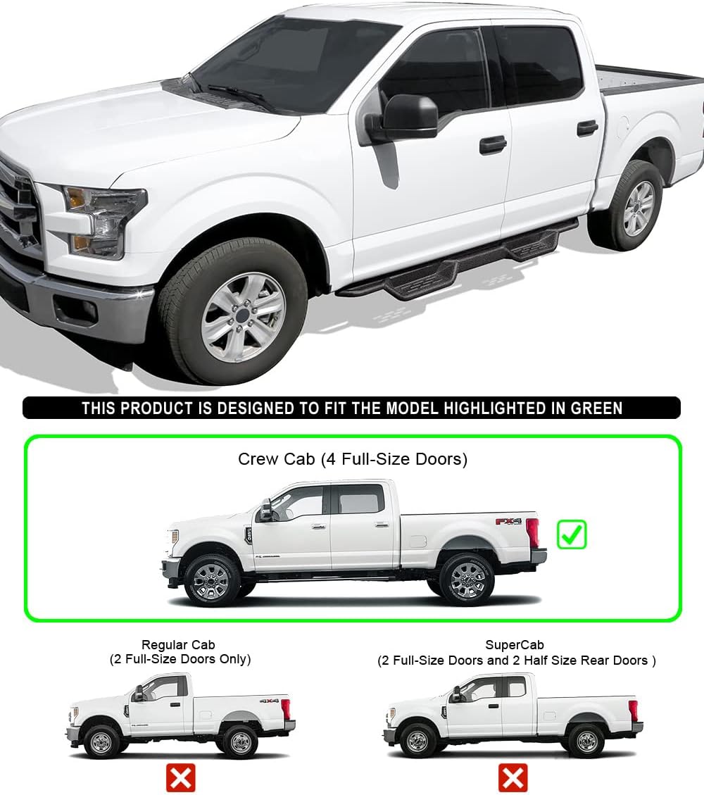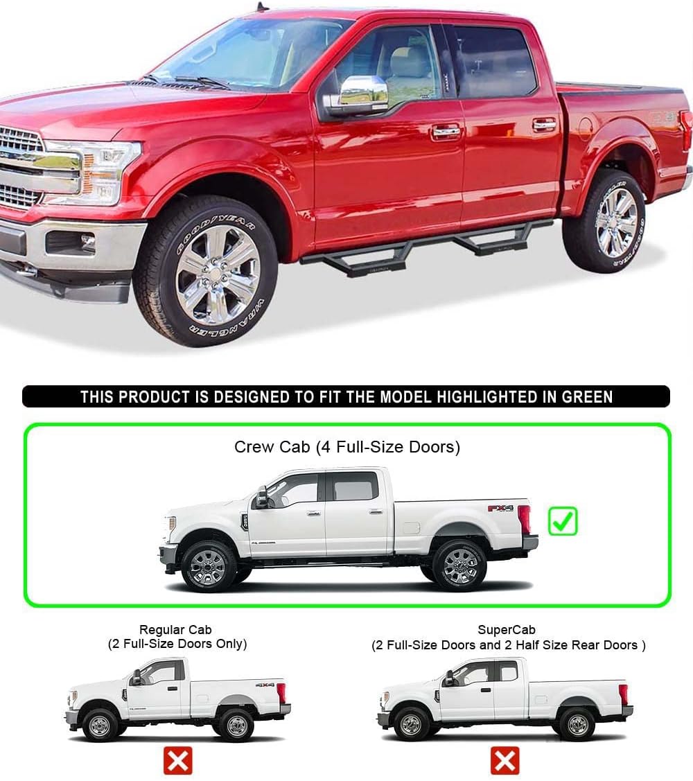 APS Stainless Steel Pocket Steps Running Boards Side Bars Compatible with Ford F150 2015-2023 SuperCrew Cab & F150 Lightning 2022-2023 & F-250 F-350 Super Duty 2017-2022 Crew Cab