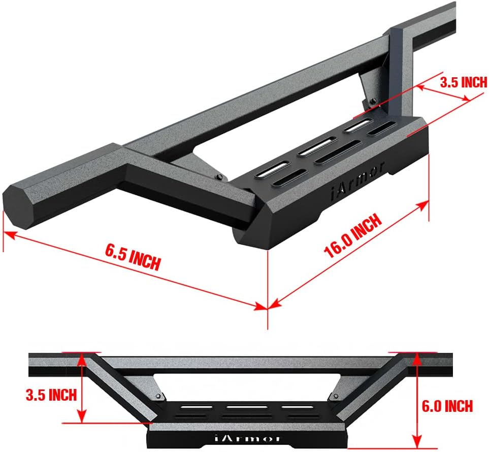 • Made of Stainless Steel square tube and drop step pads, triple-layer black powder coated finish for aggressive tough look.