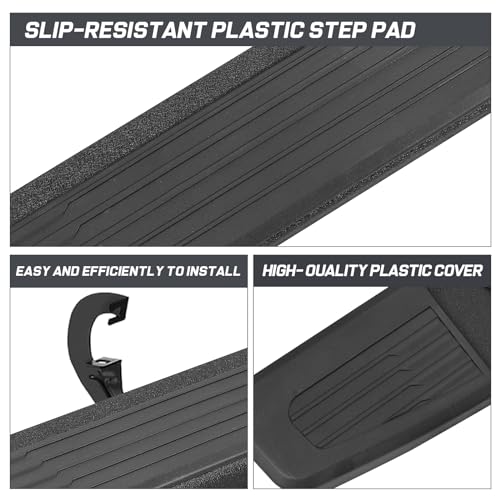 • 👍 STEP PADS: 6 Inch Running Boards With More Resilient And Sturdy Plastic Covered Slip-resistant Step Pads And Plastic End Caps.