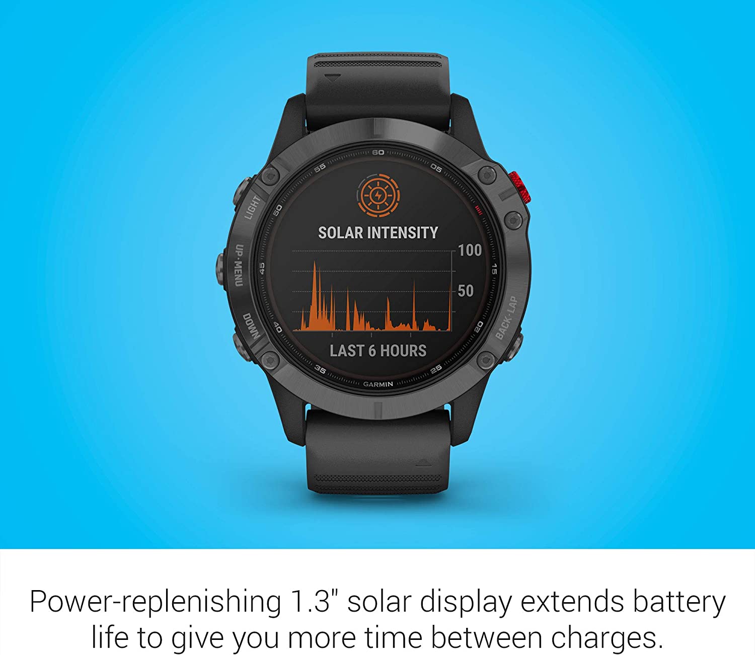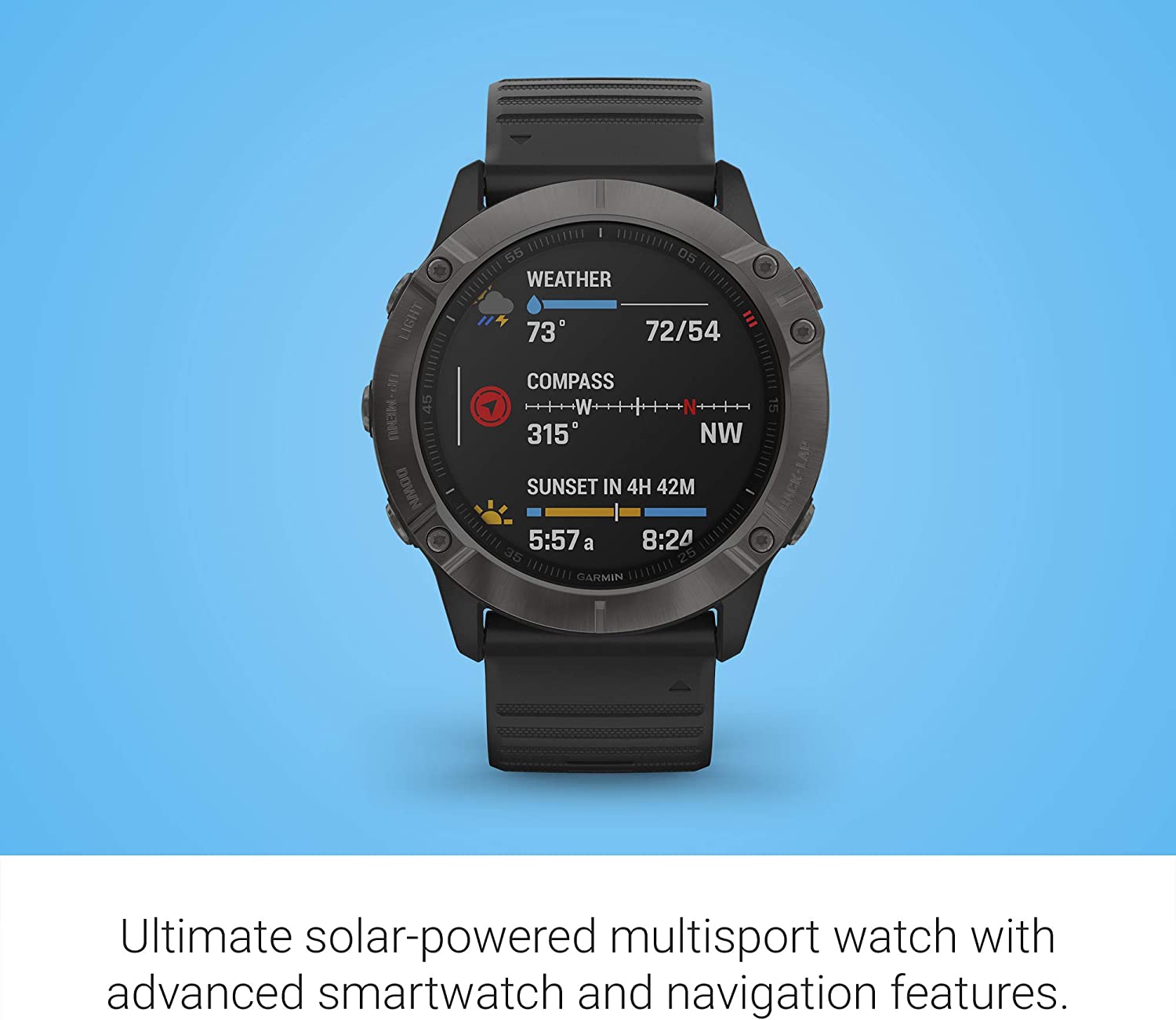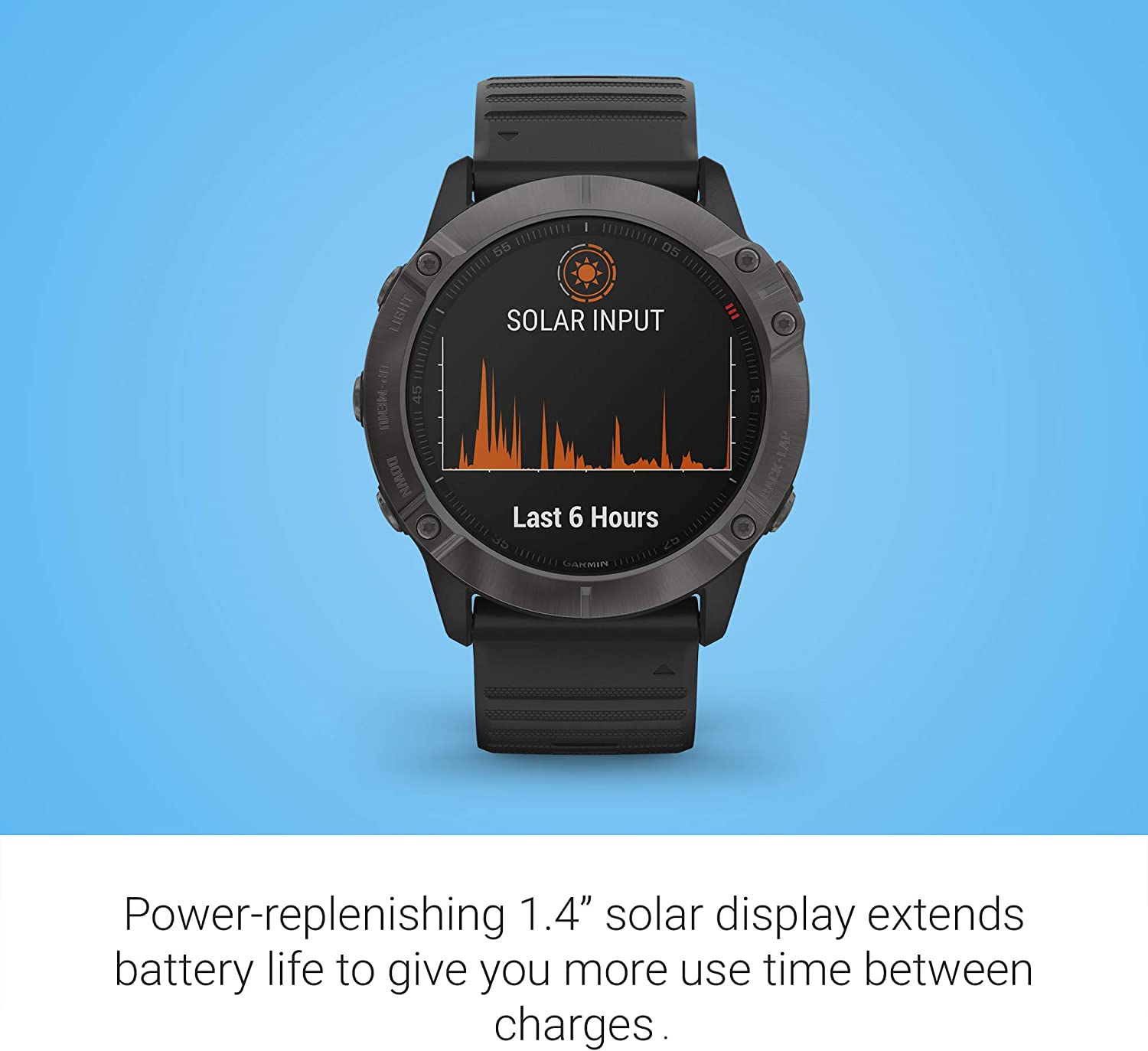 As the first Garmin device to offer solar charging on its big 1.4 inches display, the Fenix 6x Pro solar Multisport GPS Watch puts no limits on how far you can go. Its unique power-replenishing feature extends battery life, so you’ll have more on-wrist time to enjoy the Watch’s color mapping, music streaming (may require premium subscription With a third-party music provider) and other advances. A first-of-its-kind pacepro feature helps keep your pacing strategy on track, Providing grade-adjusted guidance as you run a course. You’ll have preloaded topo maps and ski maps for more than 2, 000 worldwide ski resorts. Other highlights include enhanced wrist heart rate (The data and information provided by this device is intended to be a close estimation of your activity and metrics tracked, but may not be precisely accurate), smart notifications (when paired with a compatible smartphone), pulse ox (this is not a medical device and is not intended for use in the diagnosis or monitoring of any medical condition) sensing, Garmin Pay contact less payments (not all countries and payment networks are eligible) and more. Designed for all-day wearability, it is the ultimate Watch for active lifestyles. Customizable power Manager modes let you see and control how various settings and sensors impact battery life. There’s even a new expedition mode that provides an ultralow-powered GPS mode that will last for weeks.