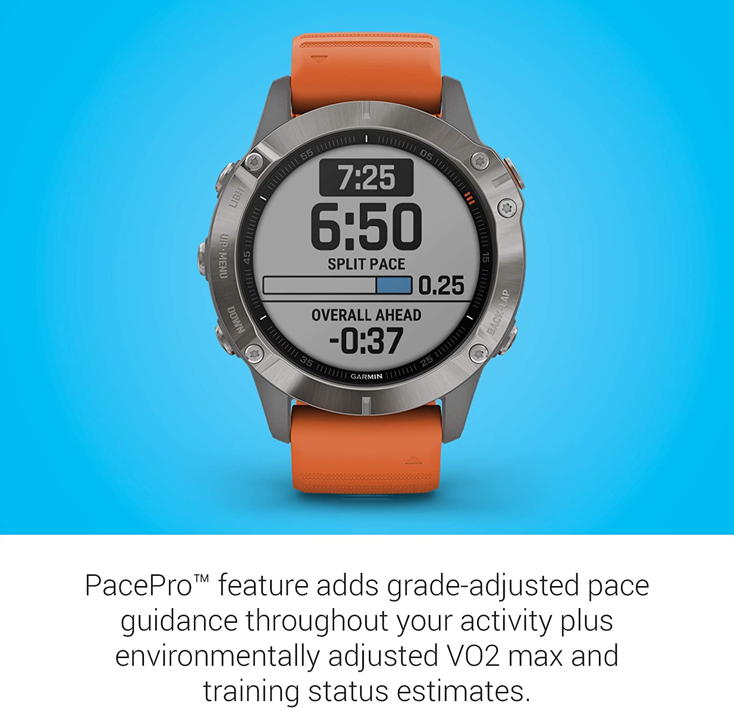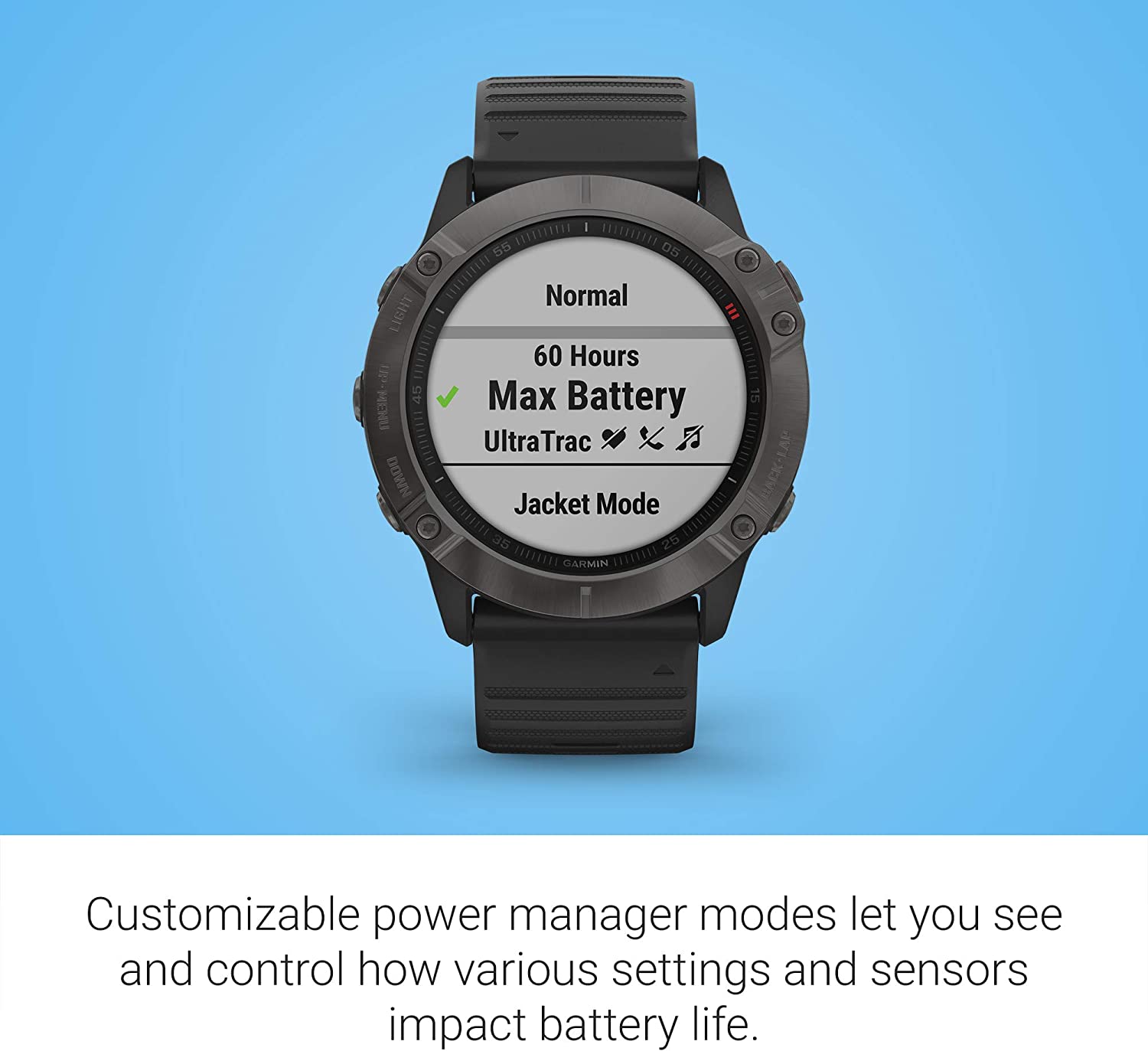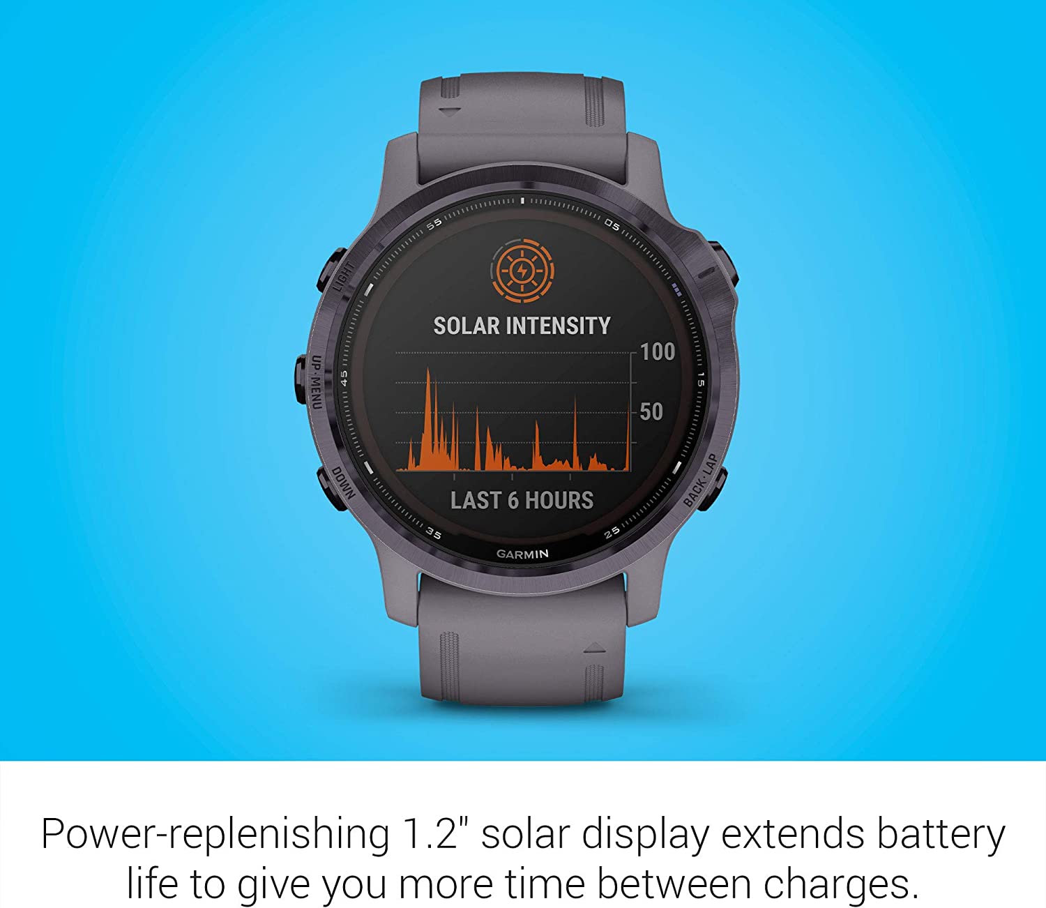 As the first Garmin device to offer solar charging on its big 1.4 inches display, the Fenix 6x Pro solar Multisport GPS Watch puts no limits on how far you can go. Its unique power-replenishing feature extends battery life, so you’ll have more on-wrist time to enjoy the Watch’s color mapping, music streaming (may require premium subscription With a third-party music provider) and other advances. A first-of-its-kind pacepro feature helps keep your pacing strategy on track, Providing grade-adjusted guidance as you run a course. You’ll have preloaded topo maps and ski maps for more than 2, 000 worldwide ski resorts. Other highlights include enhanced wrist heart rate (The data and information provided by this device is intended to be a close estimation of your activity and metrics tracked, but may not be precisely accurate), smart notifications (when paired with a compatible smartphone), pulse ox (this is not a medical device and is not intended for use in the diagnosis or monitoring of any medical condition) sensing, Garmin Pay contact less payments (not all countries and payment networks are eligible) and more. Designed for all-day wearability, it is the ultimate Watch for active lifestyles. Customizable power Manager modes let you see and control how various settings and sensors impact battery life. There’s even a new expedition mode that provides an ultralow-powered GPS mode that will last for weeks.