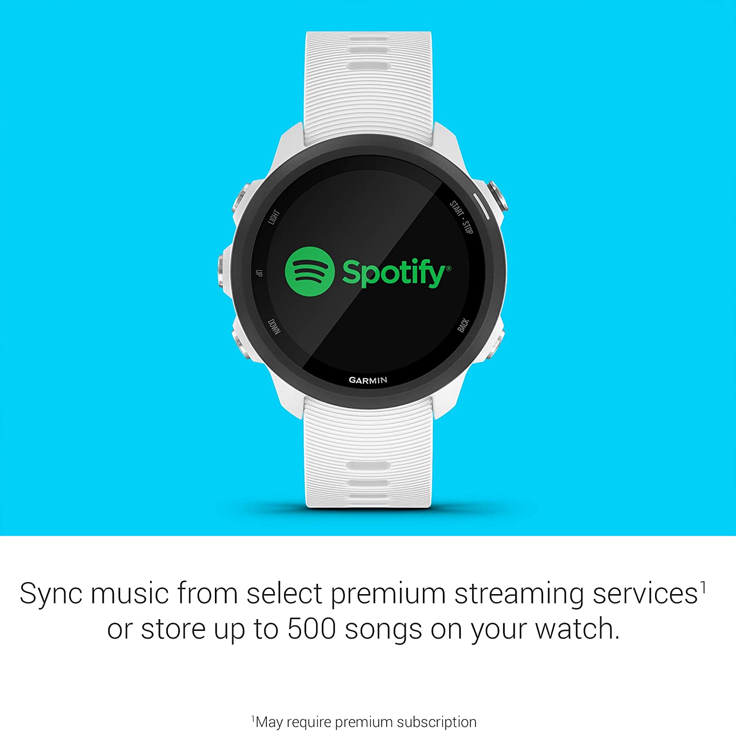 You do the running. Forerunner 245 Music does the thinking. It even gets to know you, mile after mile and song after song. This GPS smartwatch has storage for your favorite tunes, so you can keep moving to the music without having to lug your phone along. It also tracks your stats, crunches the numbers and gets to know all about your performance, your running form, your training history and even your goals. All you need to focus on is putting one foot in front of the other.