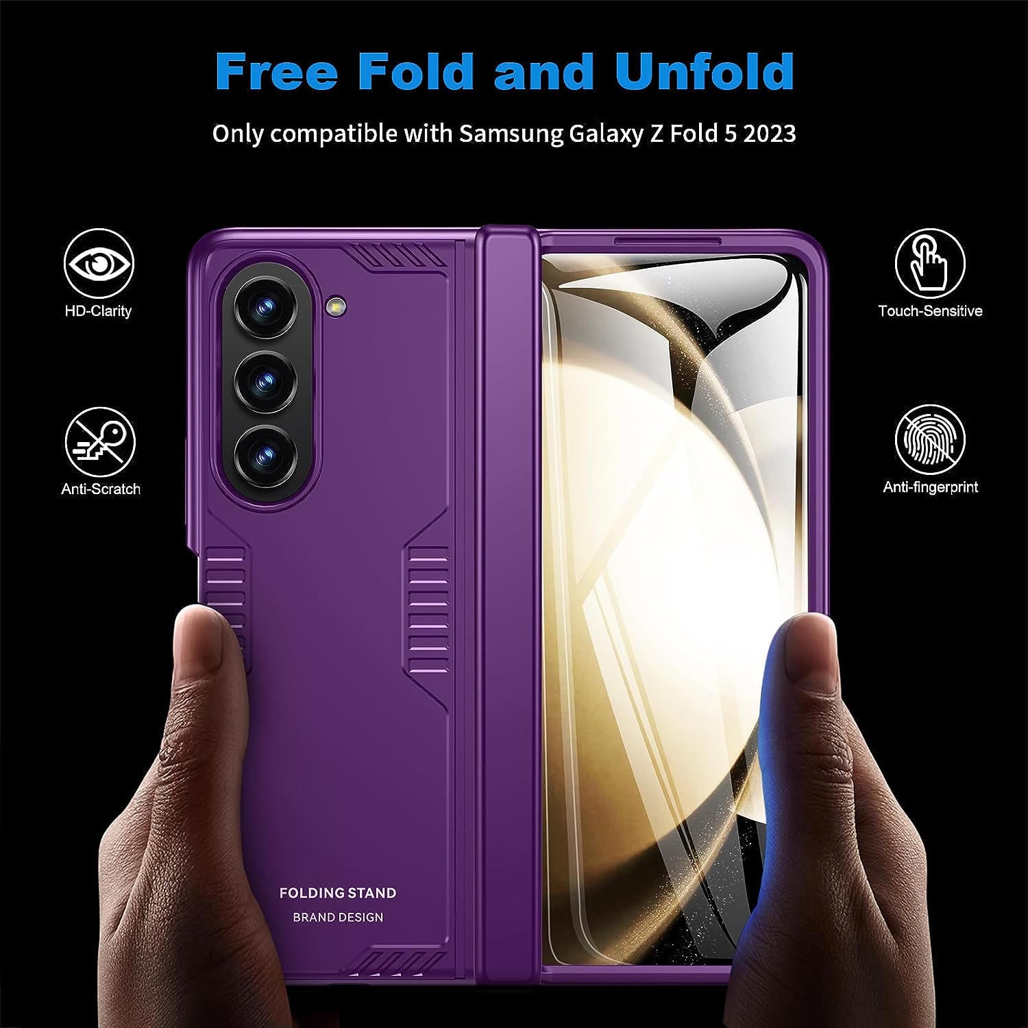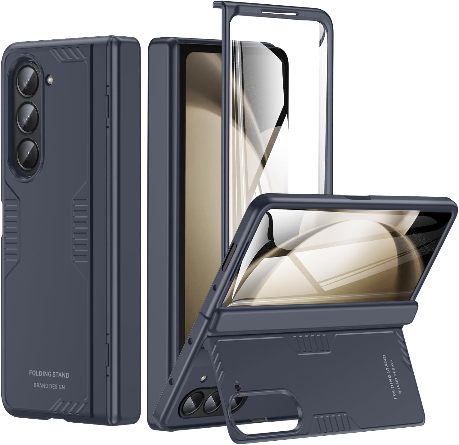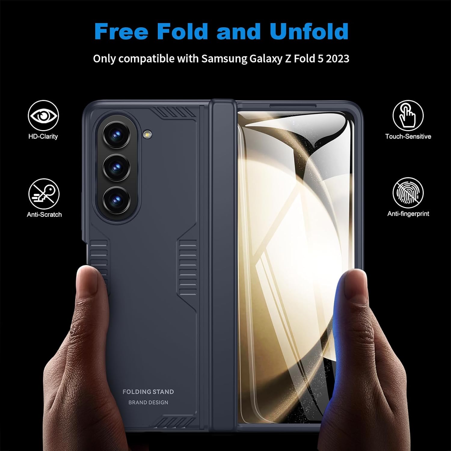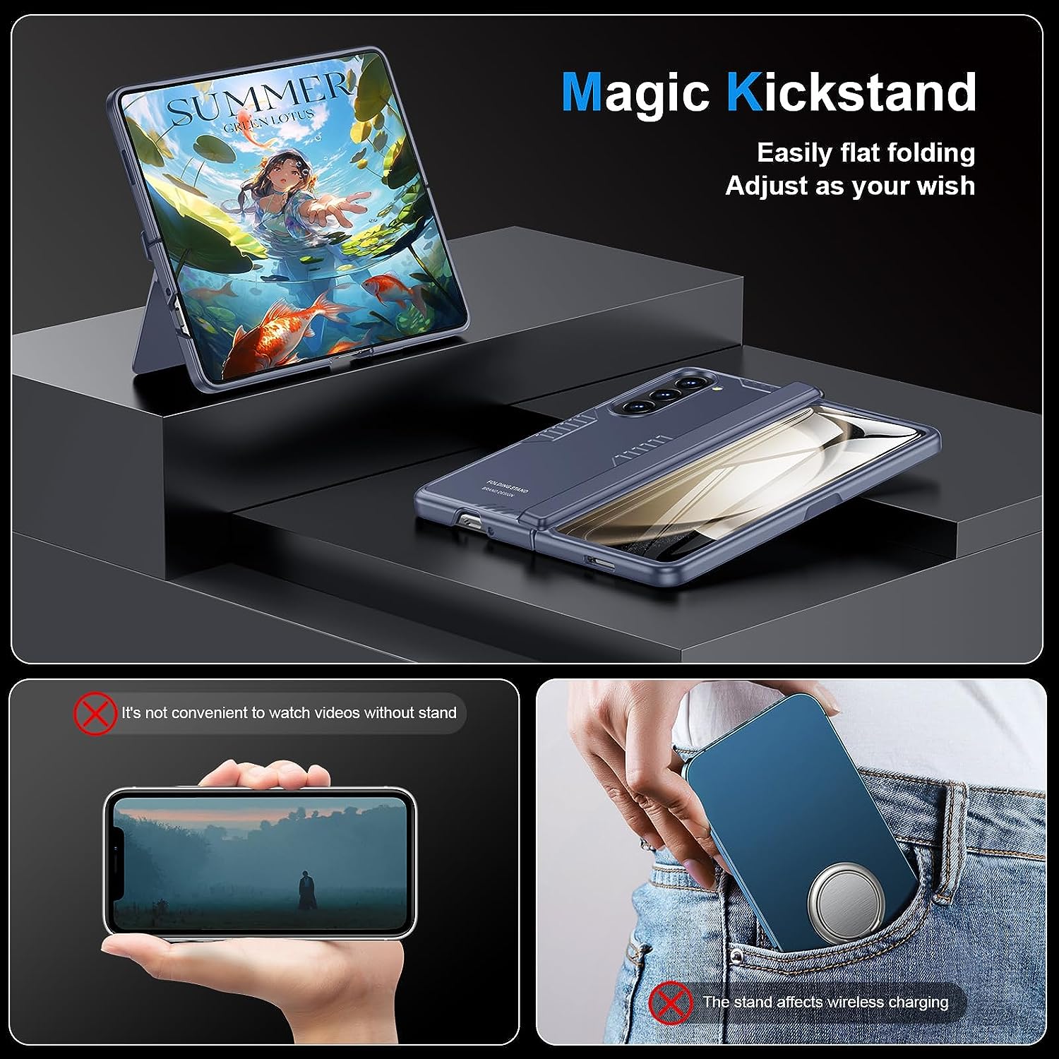 for Samsung Z-Fold-5 Case: [Hidden Kickstand][Wireless Charging] Slim Hinge Protection Lightweight Stand Case with Screen Protector- Protective Phone Cover for Samsung Galaxy Z Fold 5 5G 2023