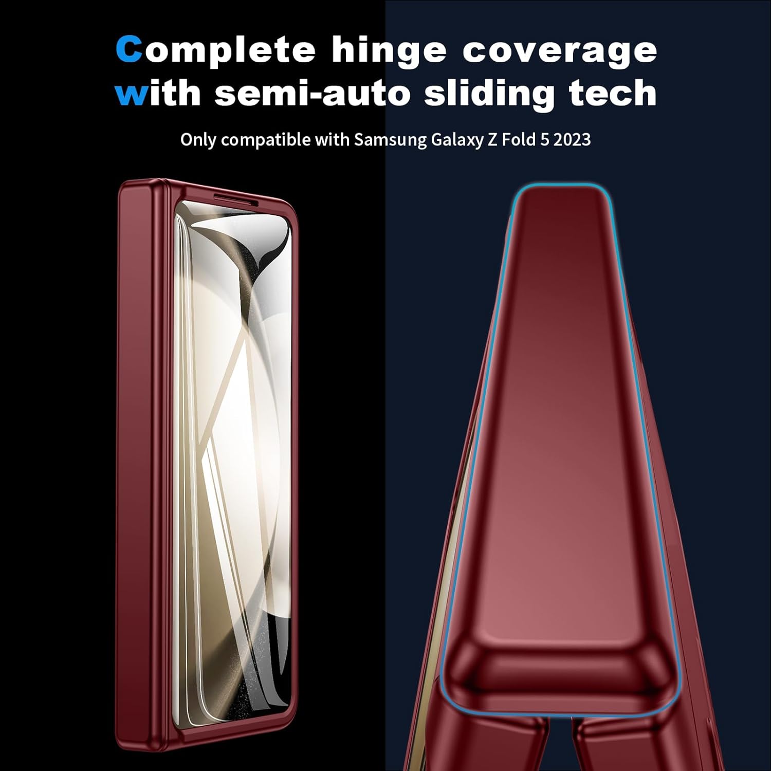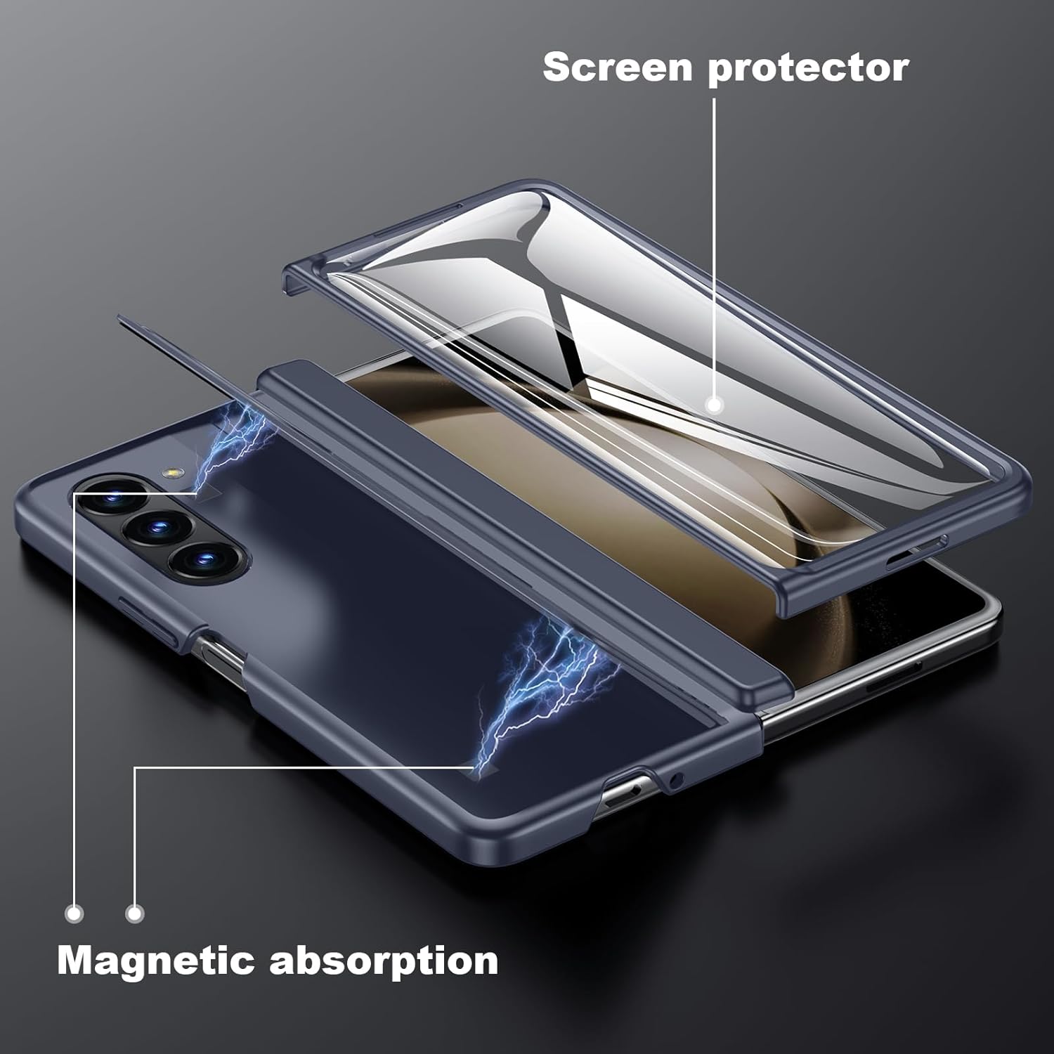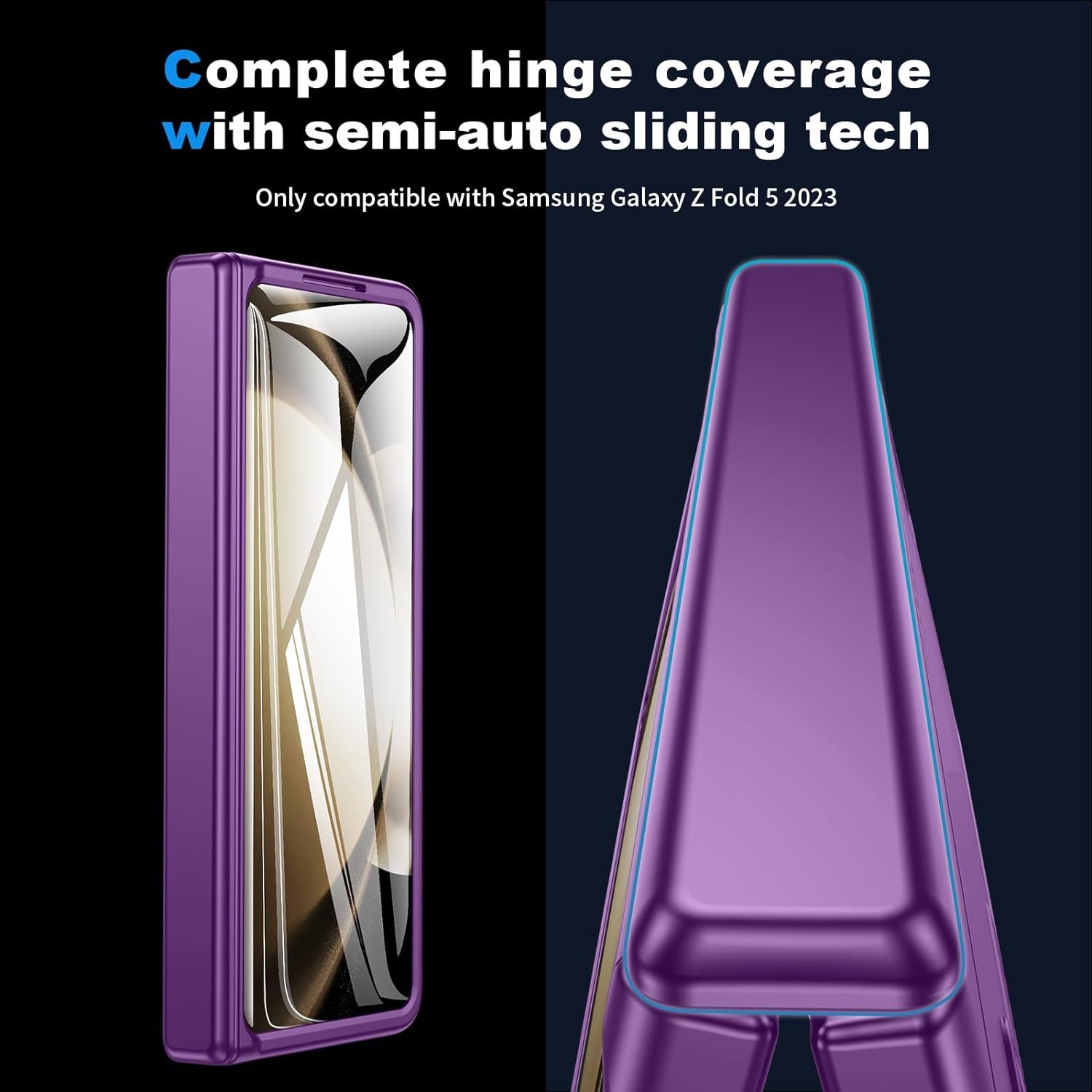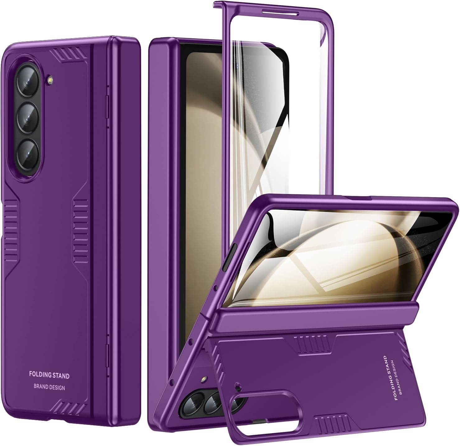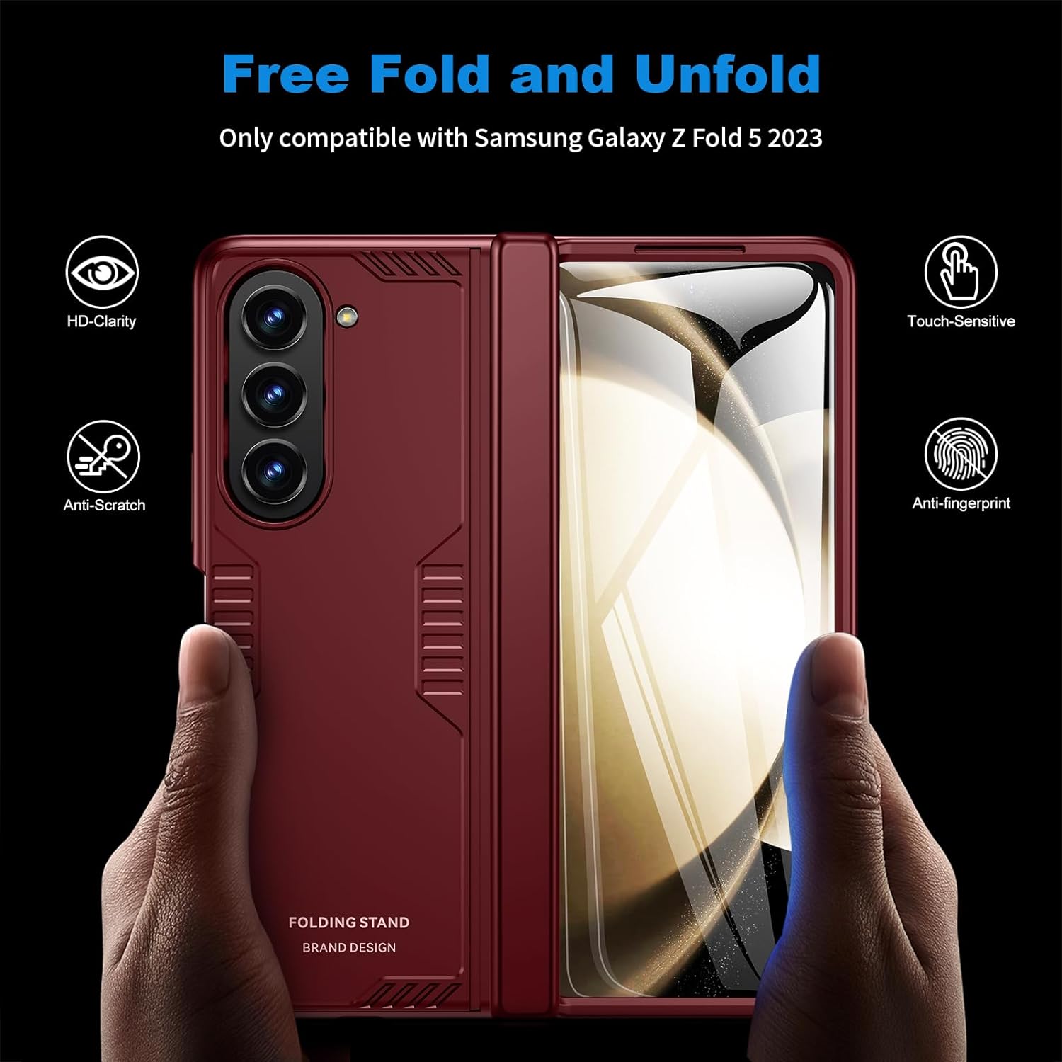 for Samsung Z-Fold-5 Case: [Hidden Kickstand][Wireless Charging] Slim Hinge Protection Lightweight Stand Case with Screen Protector- Protective Phone Cover for Samsung Galaxy Z Fold 5 5G 2023