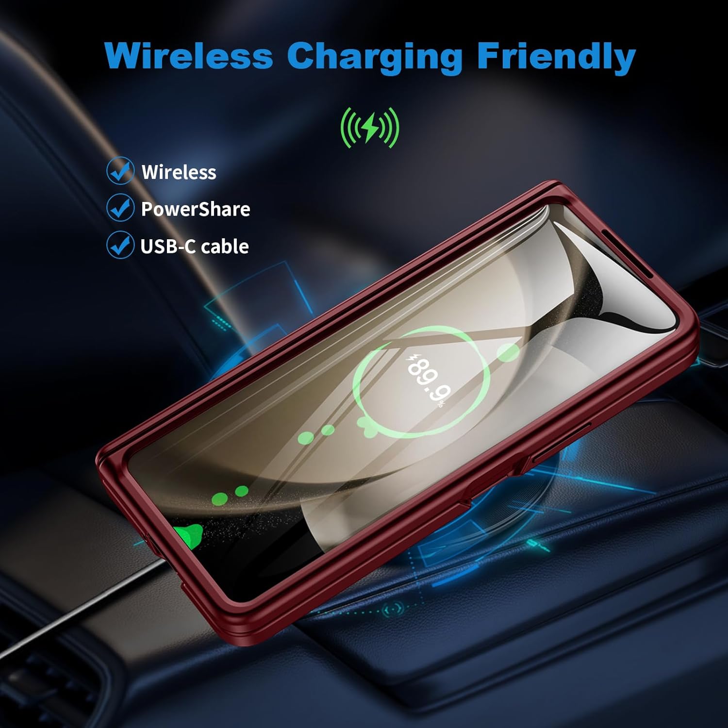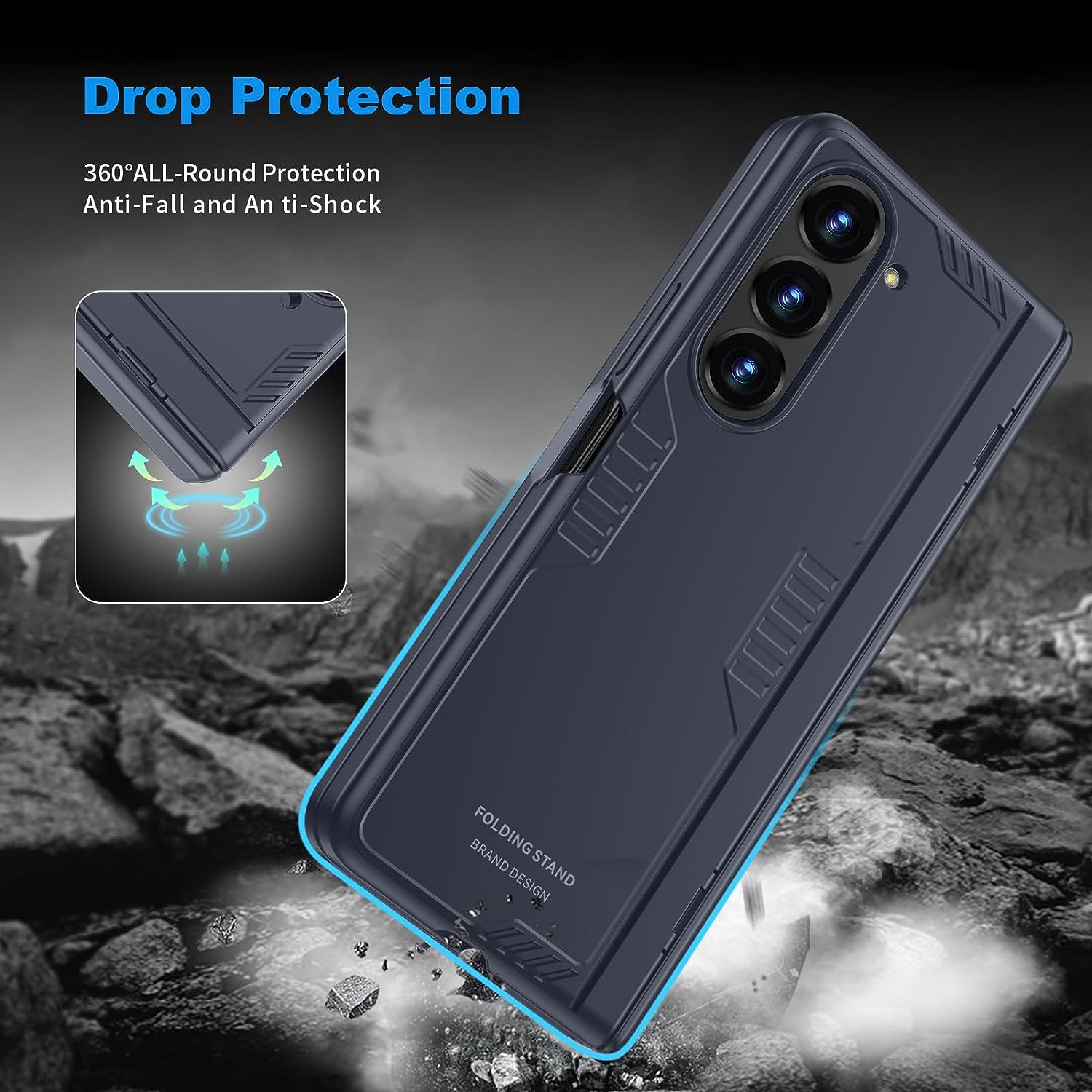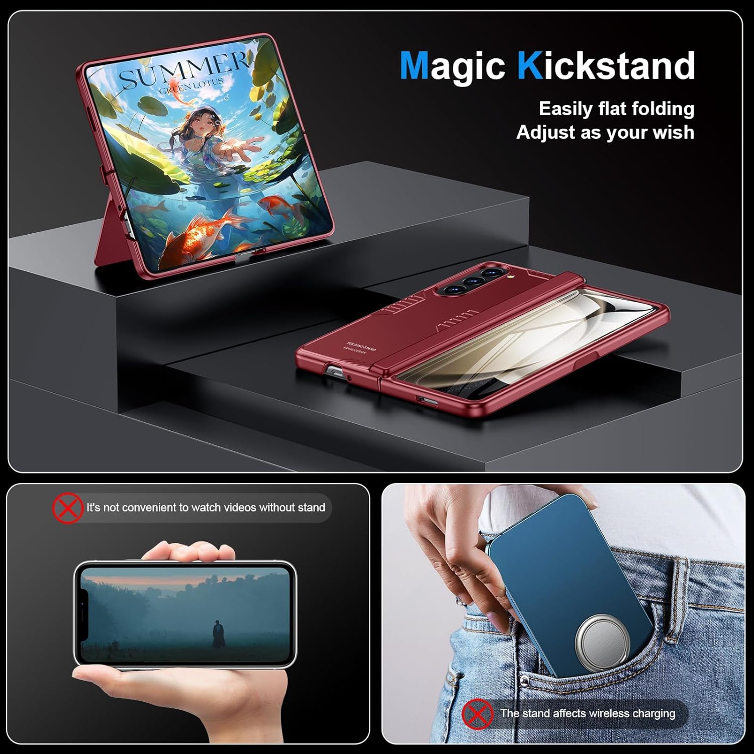 • 【Innovative Hidden Stand & Wireless Charging】Samsung Galaxy Z Fold 5 case kickstand is magnetically attached and can be unfolded at any time to free your hands if you want to use the stand feature, making it perfectly hidden when you're not using it. In addition, you don't need to remove the cover to charge your Samsung Z Fold 5 phone wirelessly, providing convenience for your life.