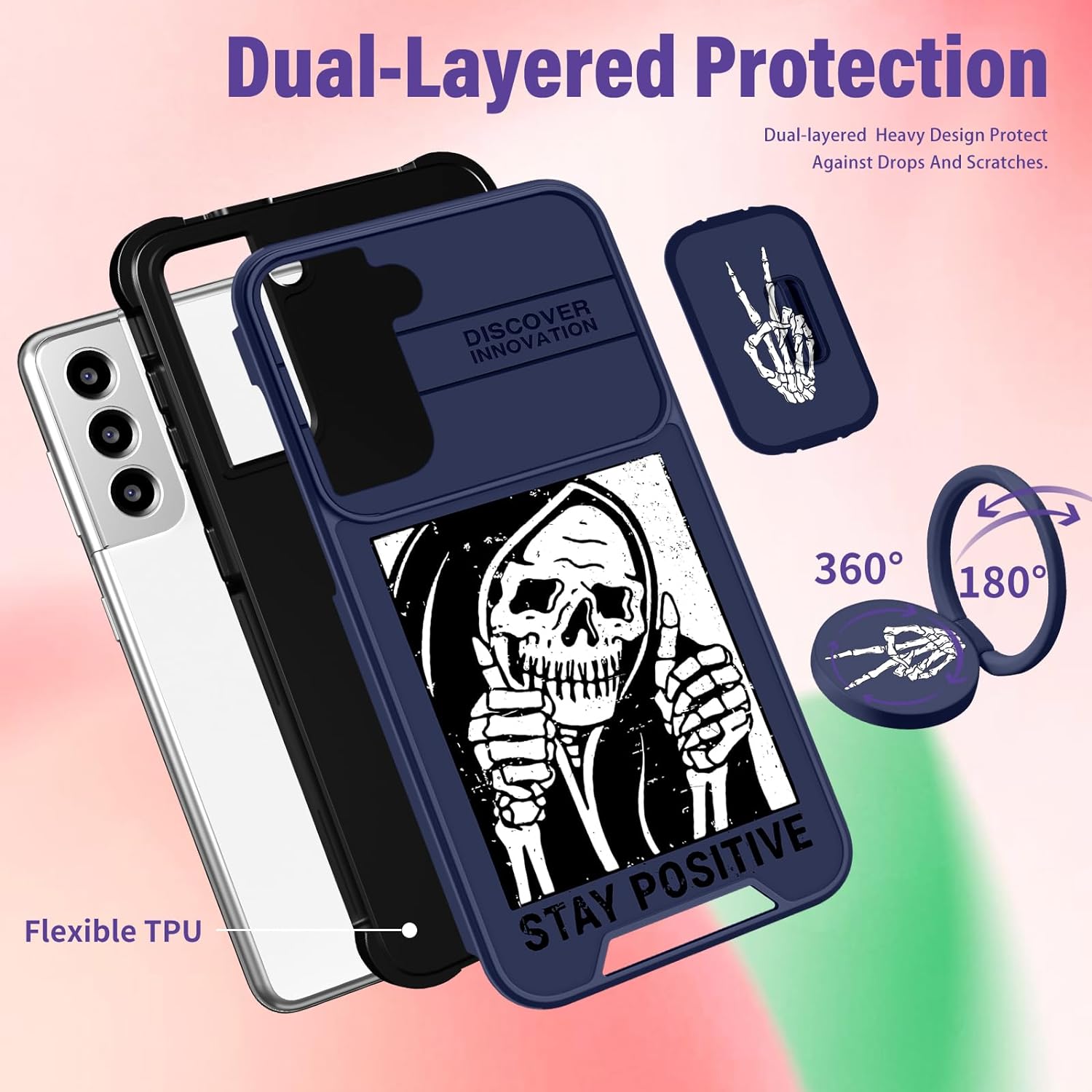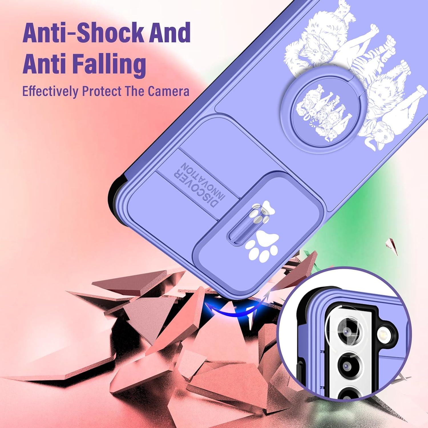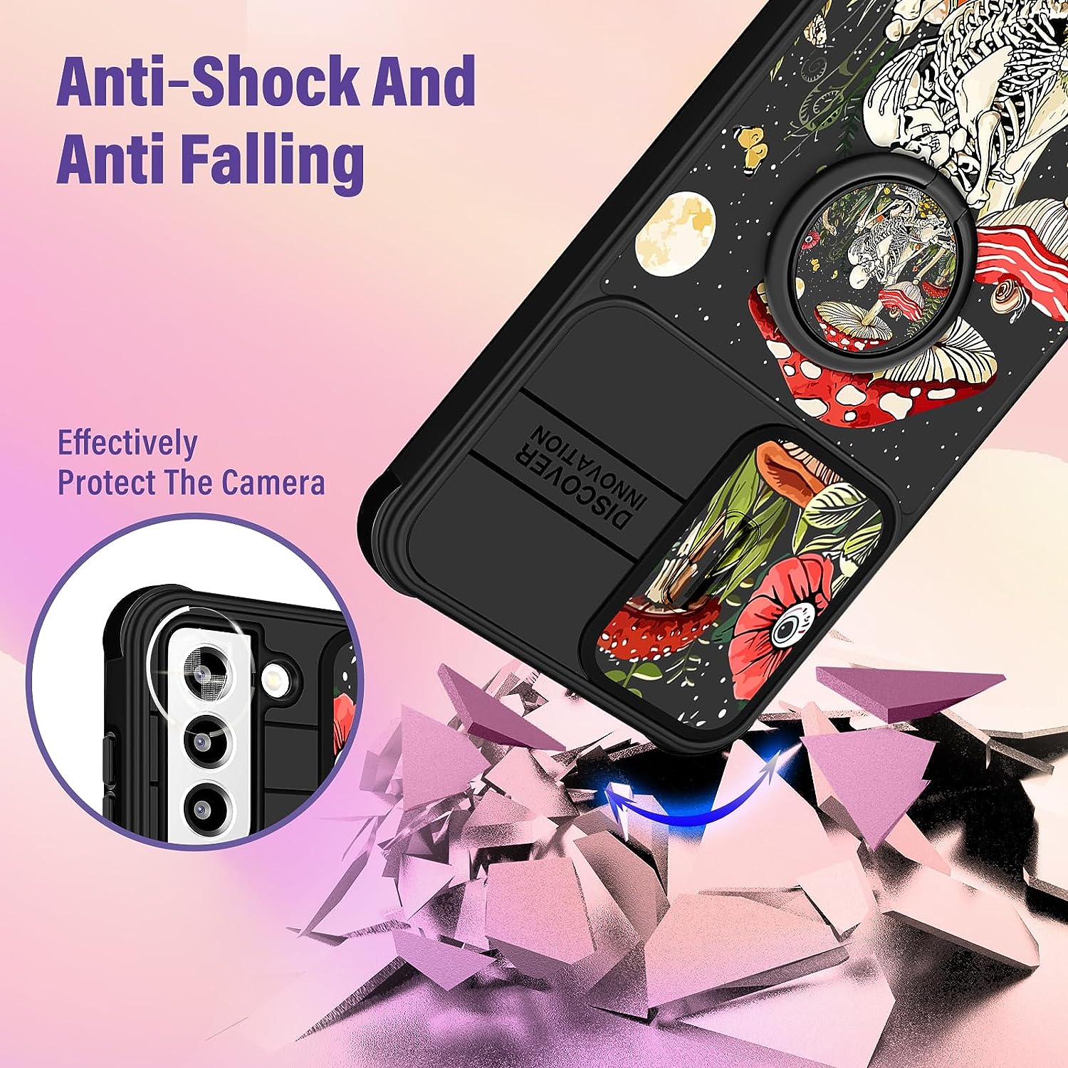 • Slide Camera Cover: The unique sliding camera cover design of this for Samsung S22 Plus phone case is really smooth and it can be fixed in a certain position, it protects the camera lens of your phone from bumps and scratches.