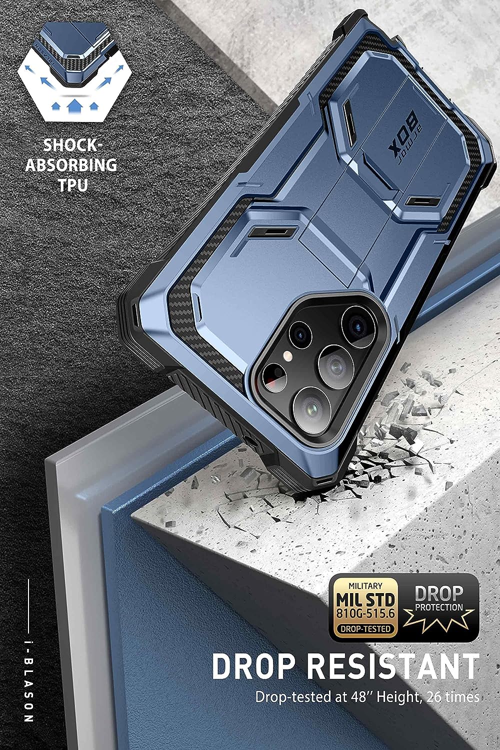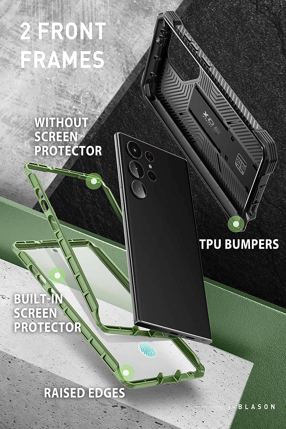 i-Blason Armorbox Designed for Samsung Galaxy S23 Ultra Case with Kickstand & Belt Clip, [2 Front Frames] Full-Body Rugged Bumper Case with Built-in Screen Protector [Support Fingerprint ID] (Black)