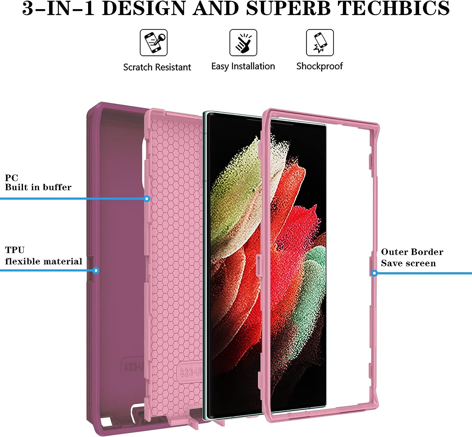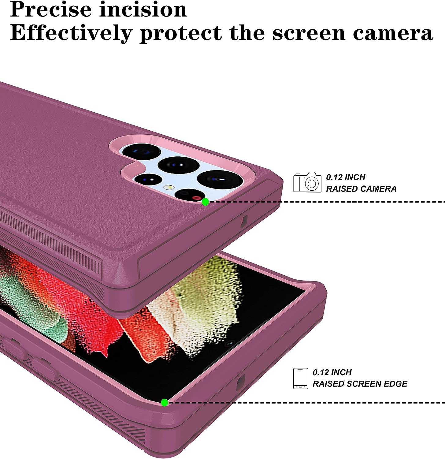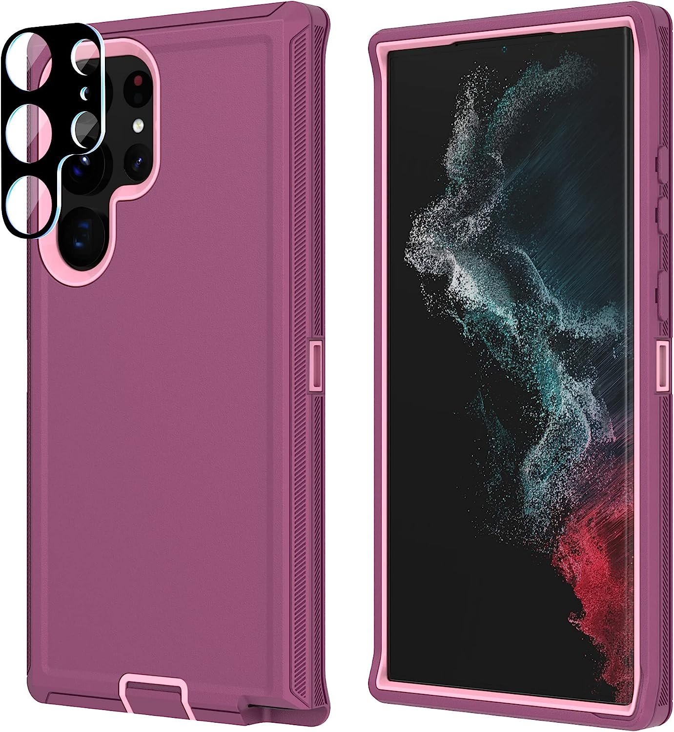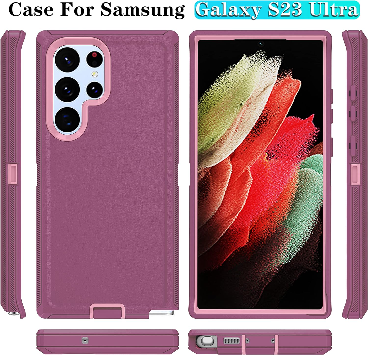 Qinmay for Samsung Galaxy S23 Ultra Case with Lens Camera Protector, Samsung S23 Ultra Case 3-Layer Heavy Duty Body Bumper and Dust Proof Cover for Samsung Galaxy S23 Ultra 5G (Purple)