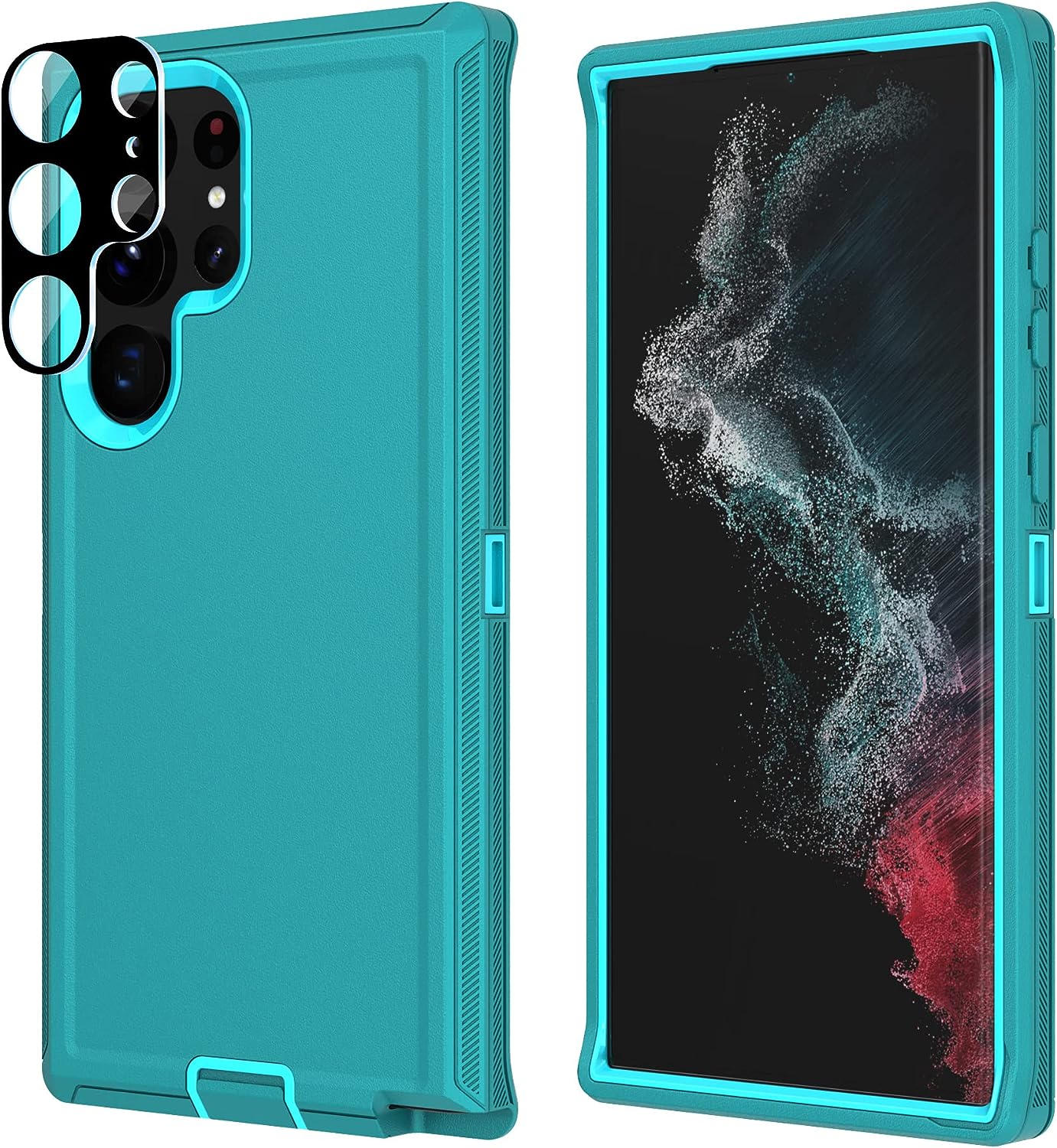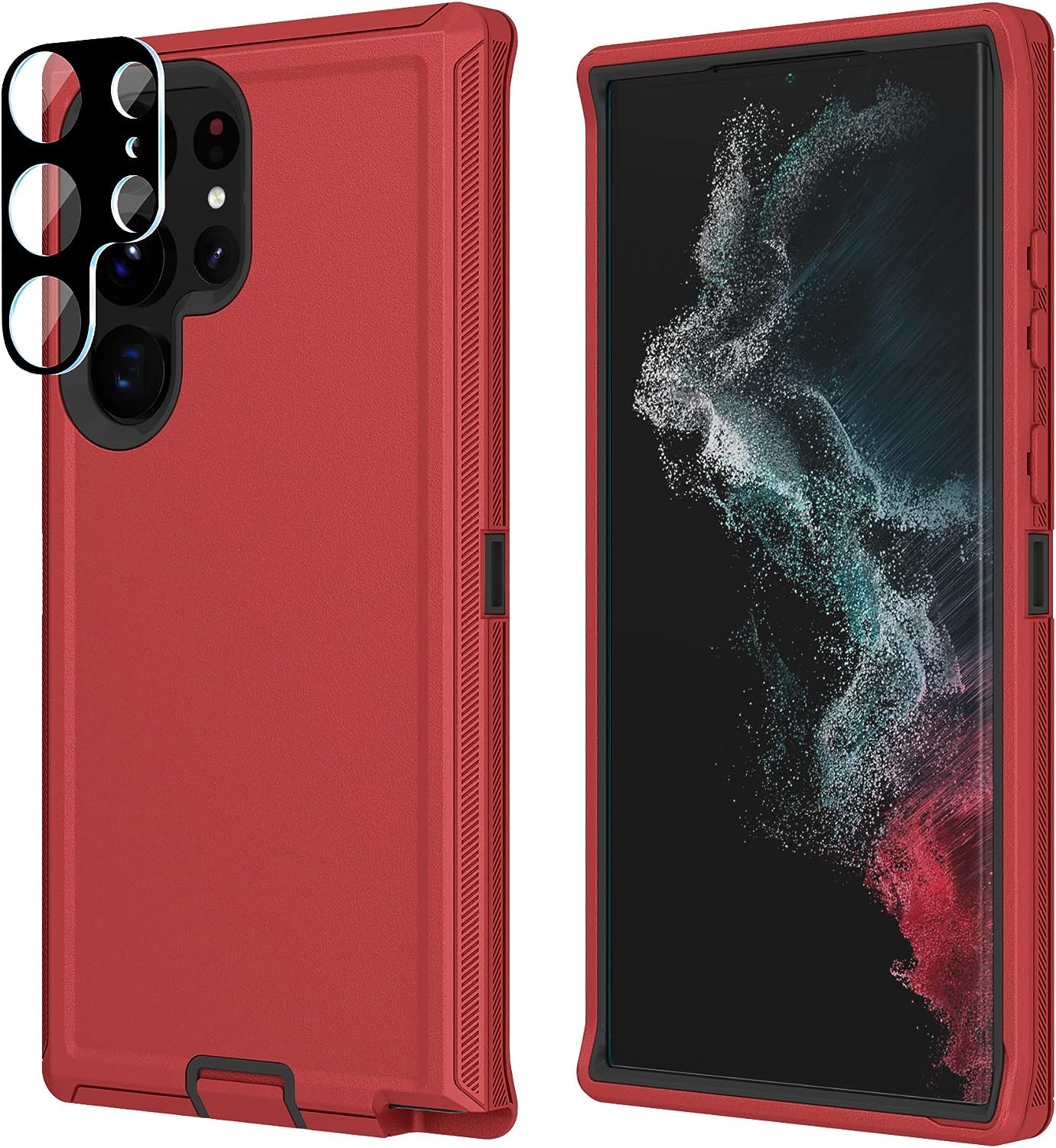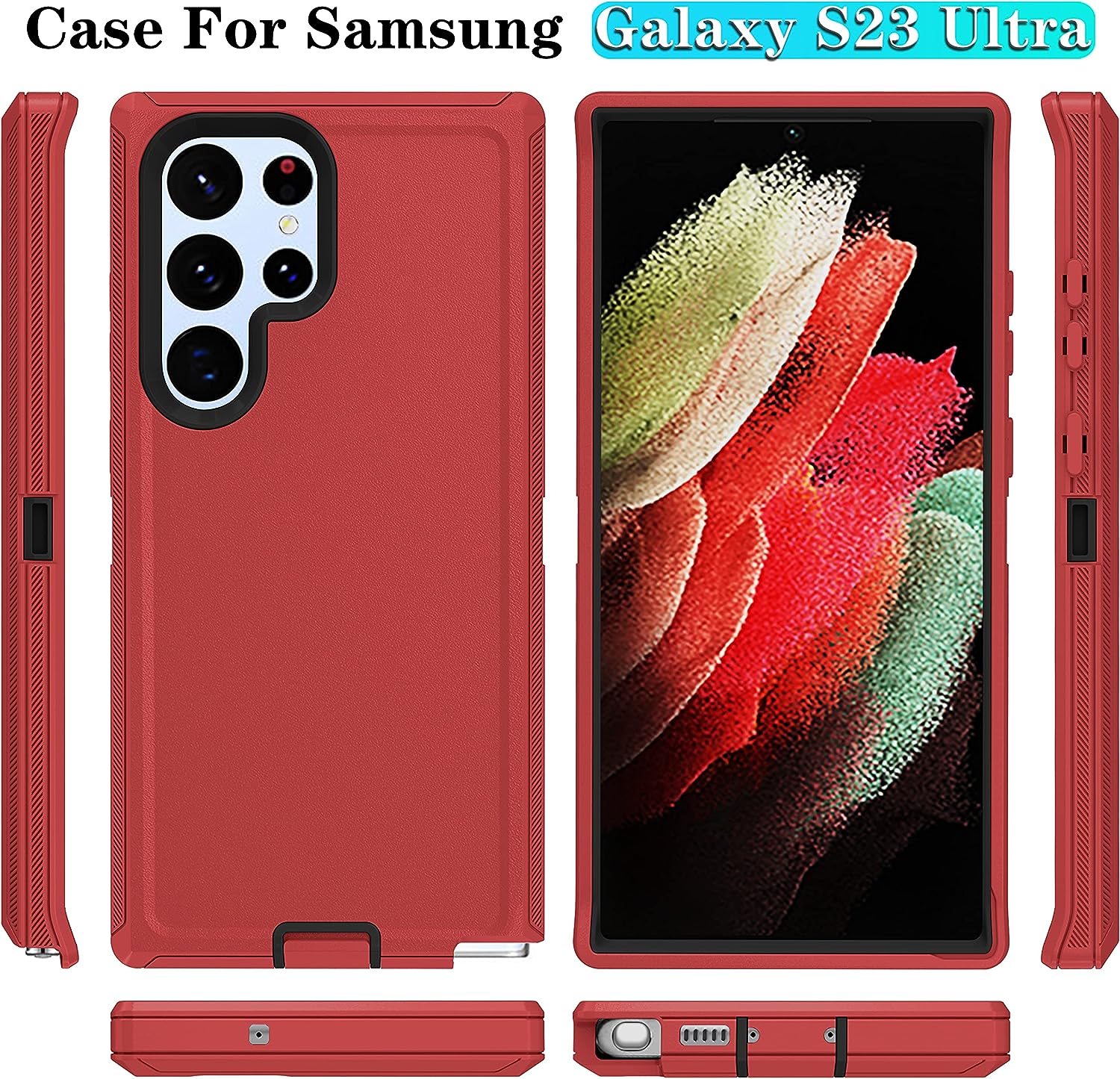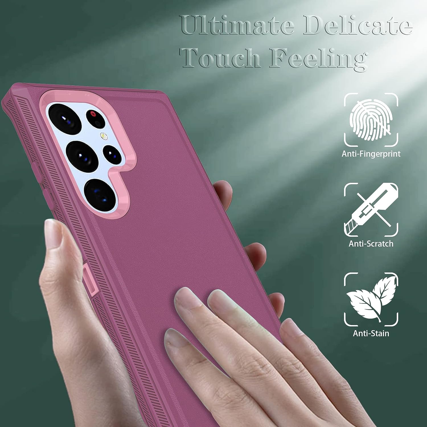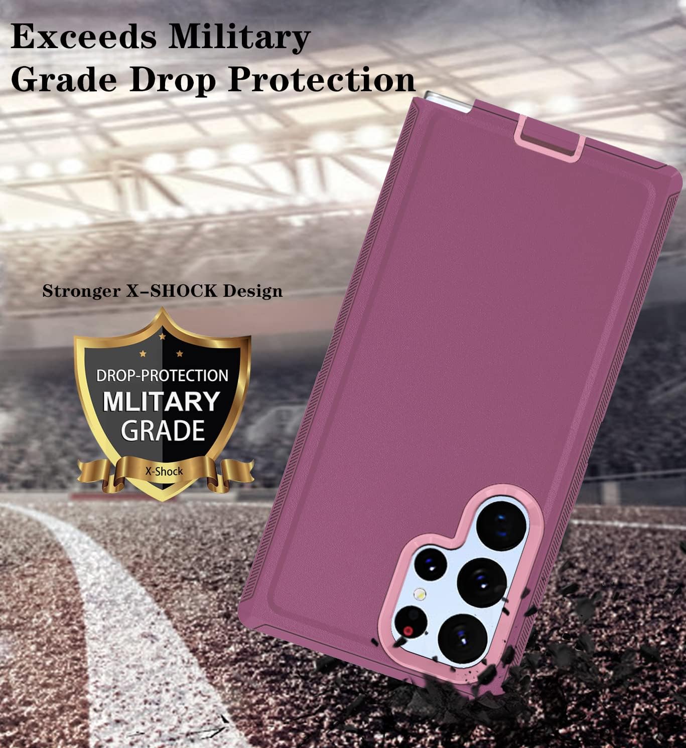 Qinmay for Samsung Galaxy S23 Ultra Case with Lens Camera Protector, Samsung S23 Ultra Case 3-Layer Heavy Duty Body Bumper and Dust Proof Cover for Samsung Galaxy S23 Ultra 5G (Purple)