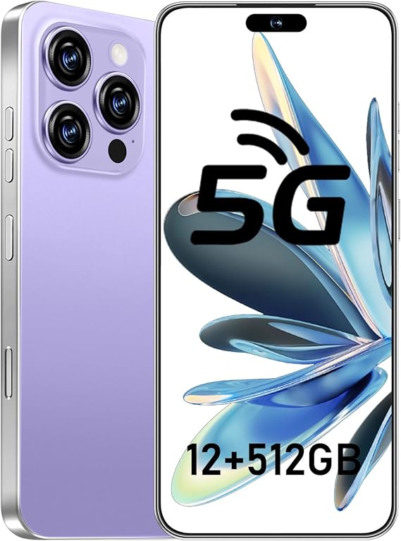 I16 PROMAX 5G Phone, Smartphone Unlocked Cell Phone 12GB+512GB/6.99_‹Ð HD Screen Display/68MP+108MP Camera/7000 mAh , Dual SIM Card/Face Unlock/Fingerprint Button Unlock-and take photos (Pale purple)