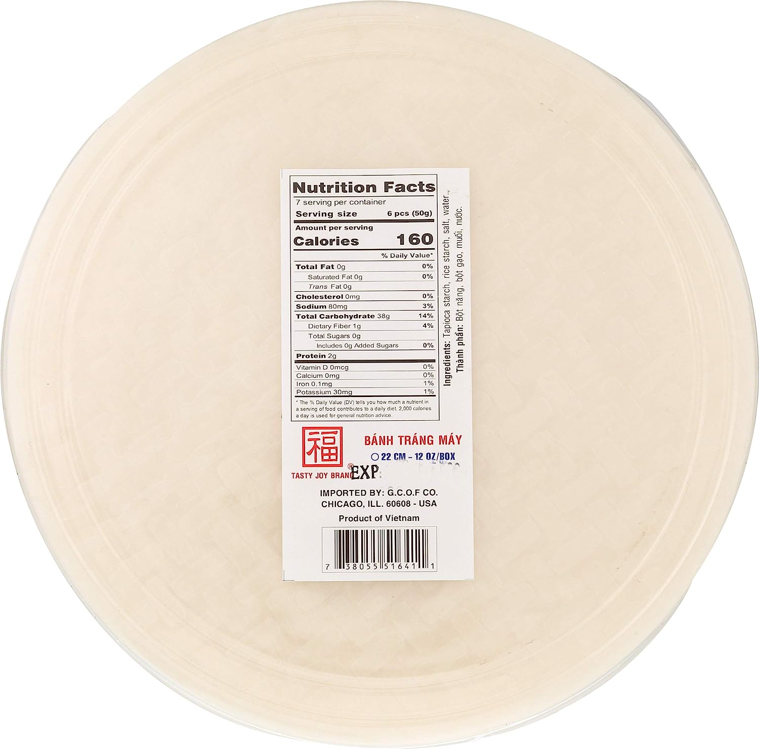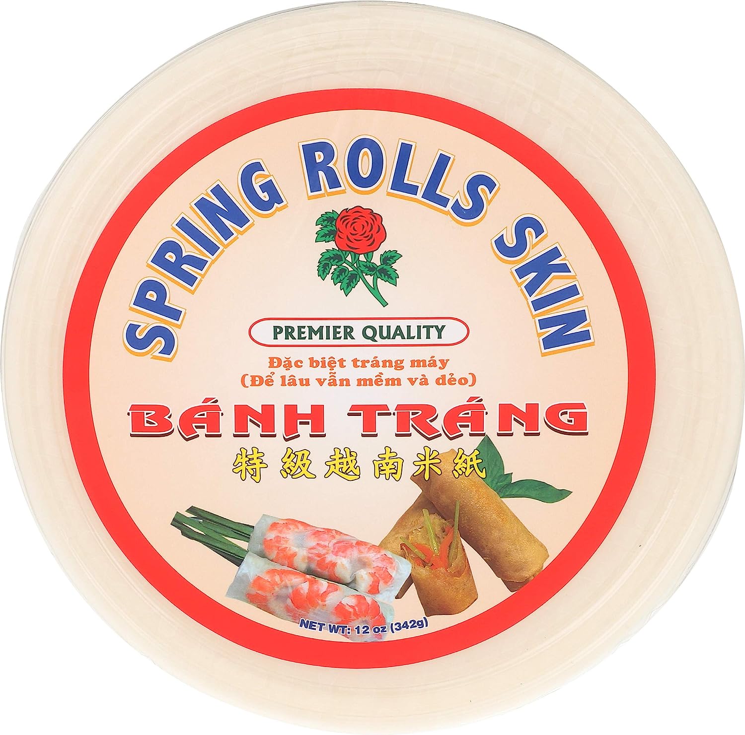 Banh Trang spring roll wrapper, 12-ounce (pack of 8)are made from rice flour, salt and water and sometimes from tapioca flour. Rice sheet wrappers are a bit softer and more pliable when soaked. The wrappers are soaked lightly before use then ingredients are rolled up in the wrappers and served with a variety of sauces.