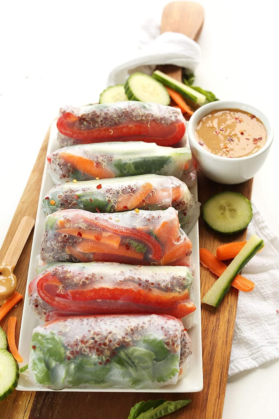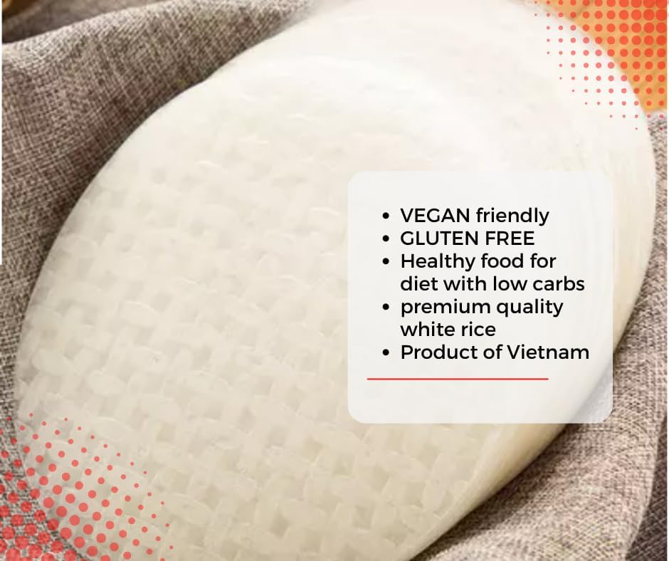 Spring roll wrappers are great for wrapping vegetables, chicken, beef or seafoods into fresh spring rolls. It’s a healthier and lower carb alternative than bread and tortilla. This is traditional food is from Vietnam and some countries from Asia. Instruction for Use: Soak rice paper in cold water, then bring to dish, fill with vegetables, chicken, beef or seafoods completely cooked. Roll it up into spring rolls. Serve the spring rolls with dipping sauce. Storage: Store in a dry, cool and airy place. Close the cover after use.