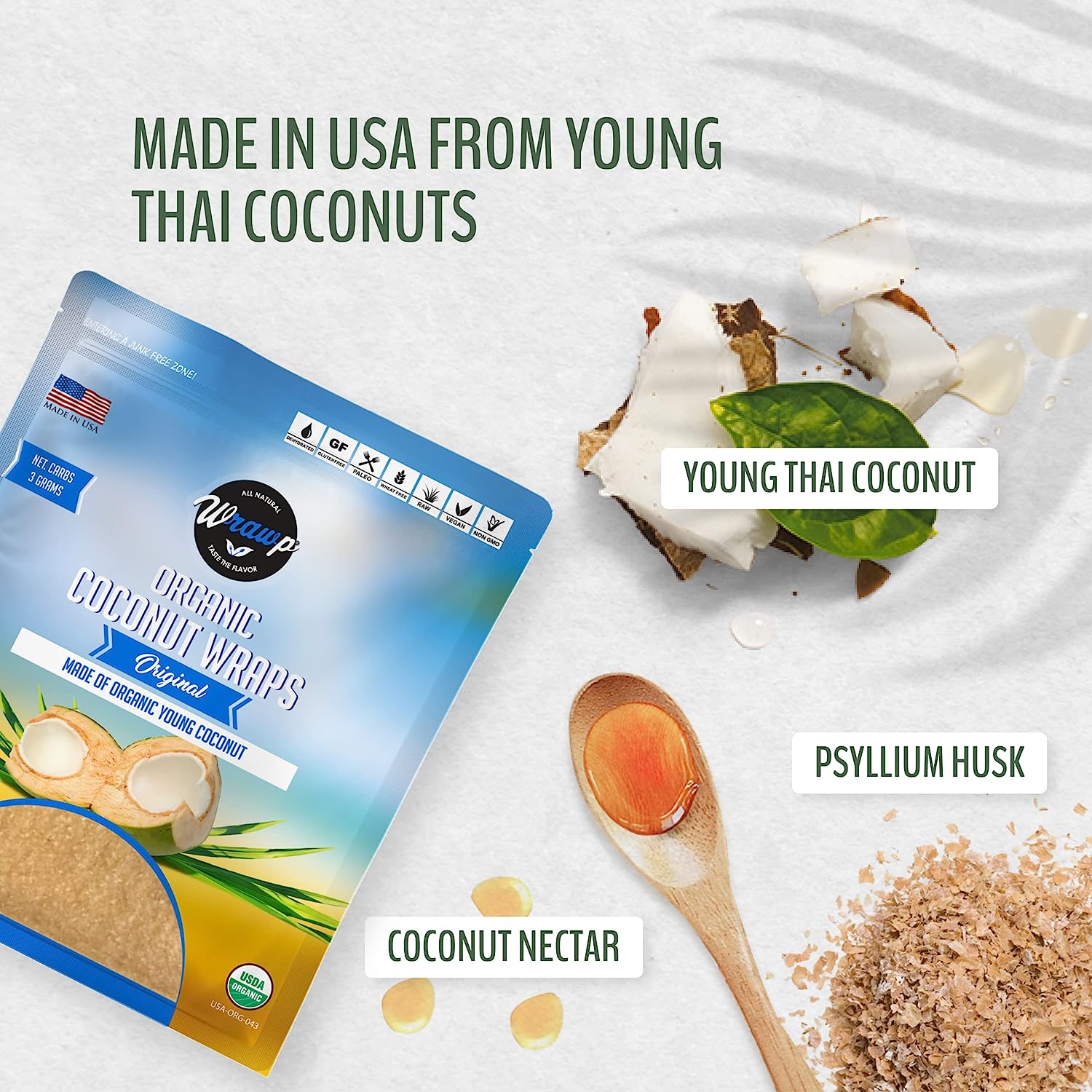 • COOKING OPTIONS - Organic Coconut Wraps offer endless possibilities for fillings and recipes. Create sweet or savory wraps, tacos, chips, and snacks. Start your morning with a cheese and avocado wrap or add strawberries for a sweet breakfast. Coconut wraps are a healthy choice for a snack or meal replacement. Be aware that the coconut flavor may overpower the filling, so consider complementing the flavor or enhancing the taste with seasonings.