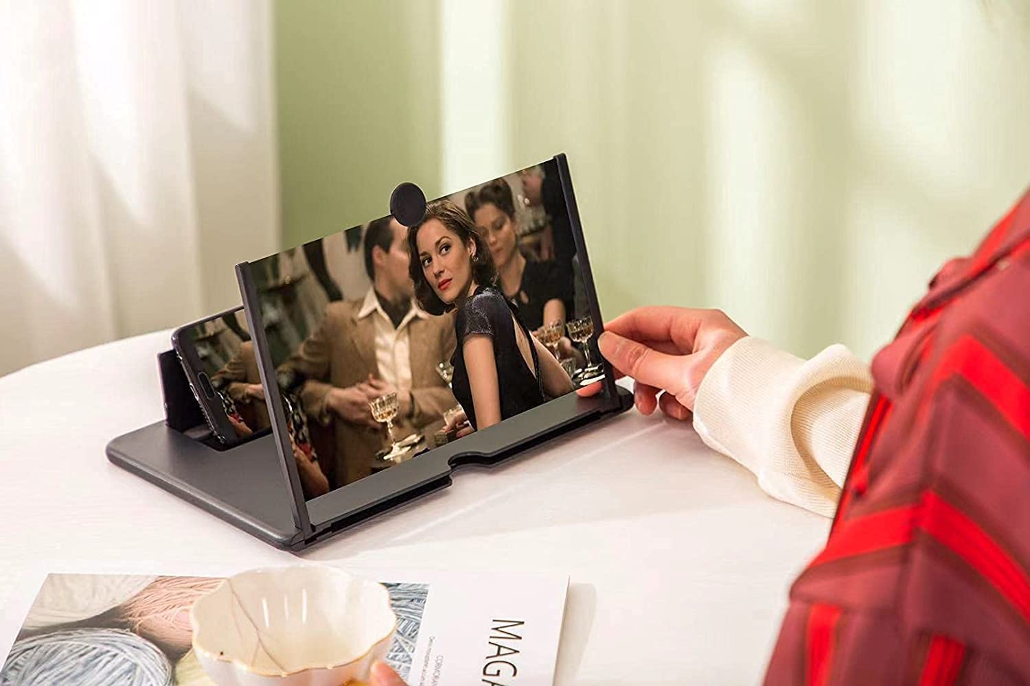 • 【HAND-FREE AND PORTABLE DESIGN】- Folding design, lightweight and compact, convenient carrying, suitable for indoor, office, desktop, travel, journey. Free your hands when using this cell phone screen magnifier to watch films and videos.