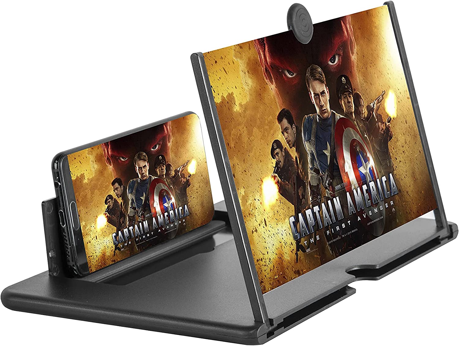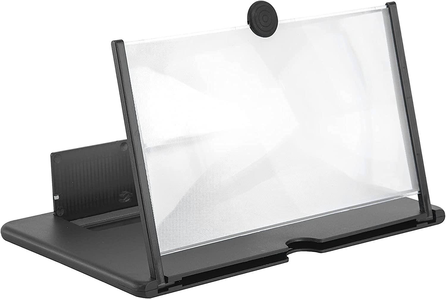 12'' 3D Screen Magnifier for Cell Phone - HD Magnifing Projector Screen Enlarger for Movies, Videos and Gaming - Compatible with All Smartphones - with Foldable Stand - Black