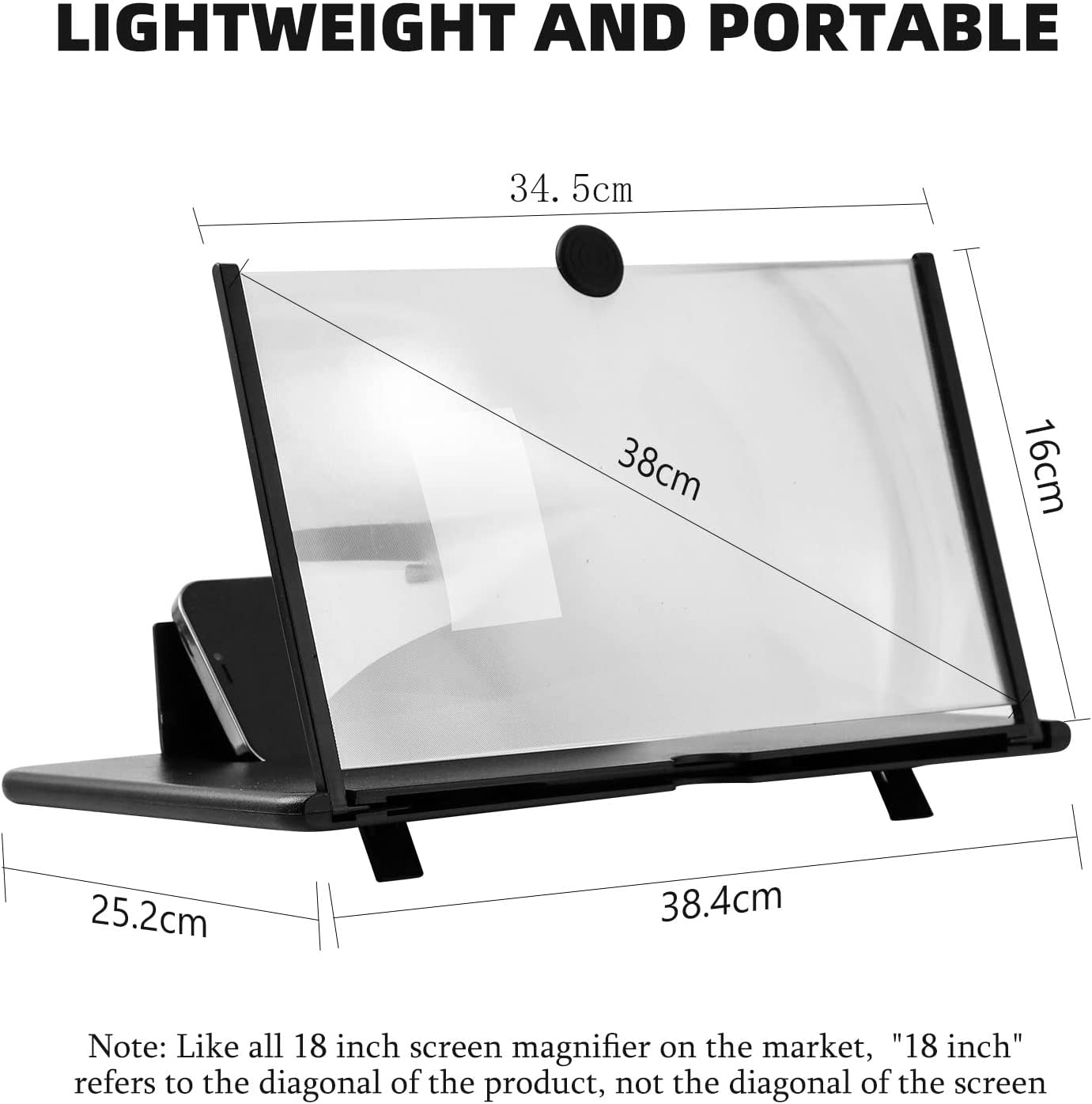 18" Screen Magnifier for Cell Phone, Phone Magnifying Screen 2023 Upgraded HD 3D Phone Screen Amplifier Phone Stand with Screen Enlarger Compatible with All Smartphones for Movies Videos Gaming