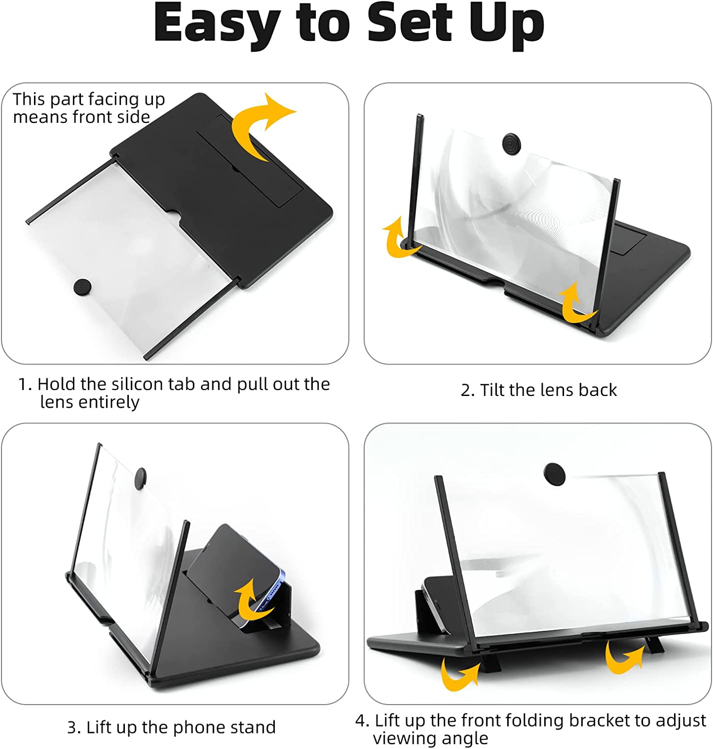 • Easy to Set Up & Adjustable & Portable: Intuitive to use, easy to fold up and carry around, making Hollamile screen magnifier a perfect battery-free mobile theater for long train or airplane journeys. The lightweight, foldable design of this phone screen magnifier is crafted to protect the lens when storing or traveling. You can lift up the front folding bracket to adjust viewing angle.