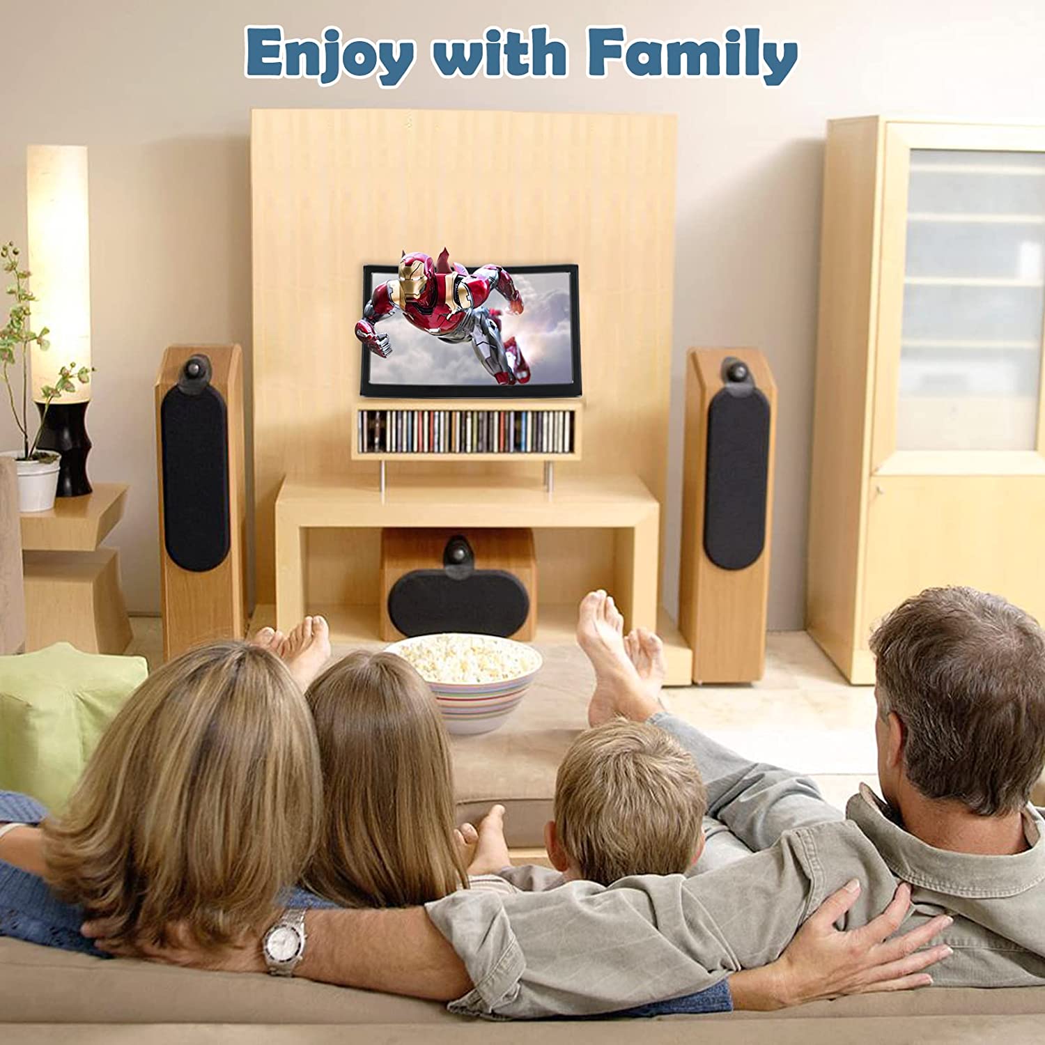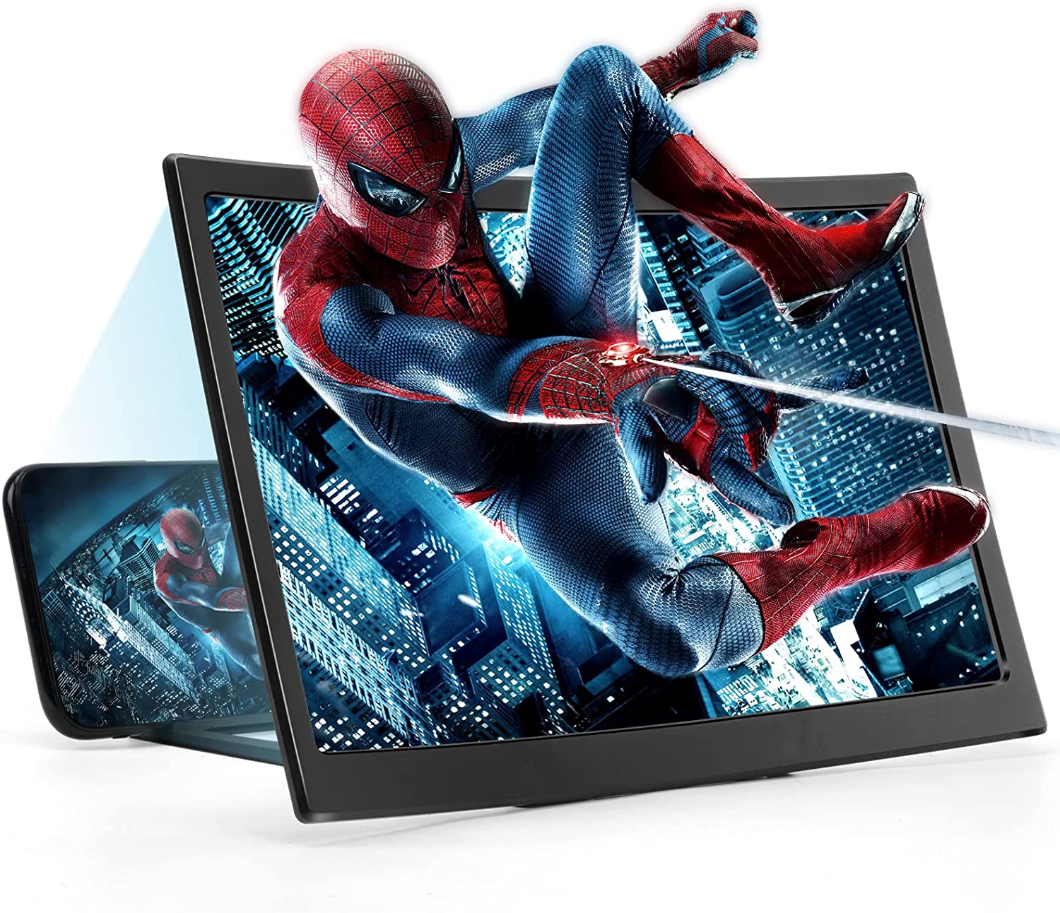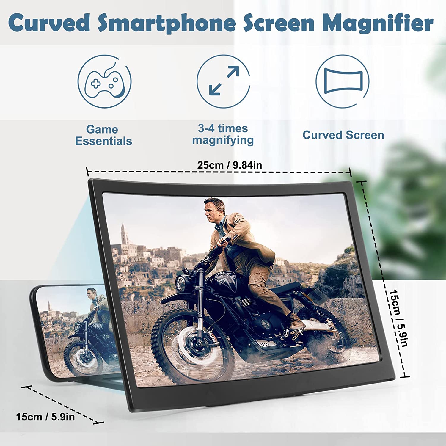 • 3D CURVED SCREEN: You can have a mini cinema experience in the comfort of your own home! 12'' 3D curved screen amplifier can magnify your phone screen 2-4times, fully fit the curvature of the human eye, more comfortable to watch. The screen magnifier will reduce the discomfort and visual fatigue caused by long-term focus on the small screen, and can effectively reduce the radiation.