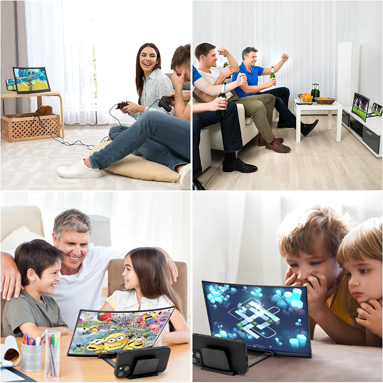 • VERSATILE USE: Our curved phone screen amplifier is suitable for all family members! It can be used for movie nights with friends, by children for cartoons, or when you are traveling and you want to relax. Also, you can use it for gaming, as the screen offers an amazing view!