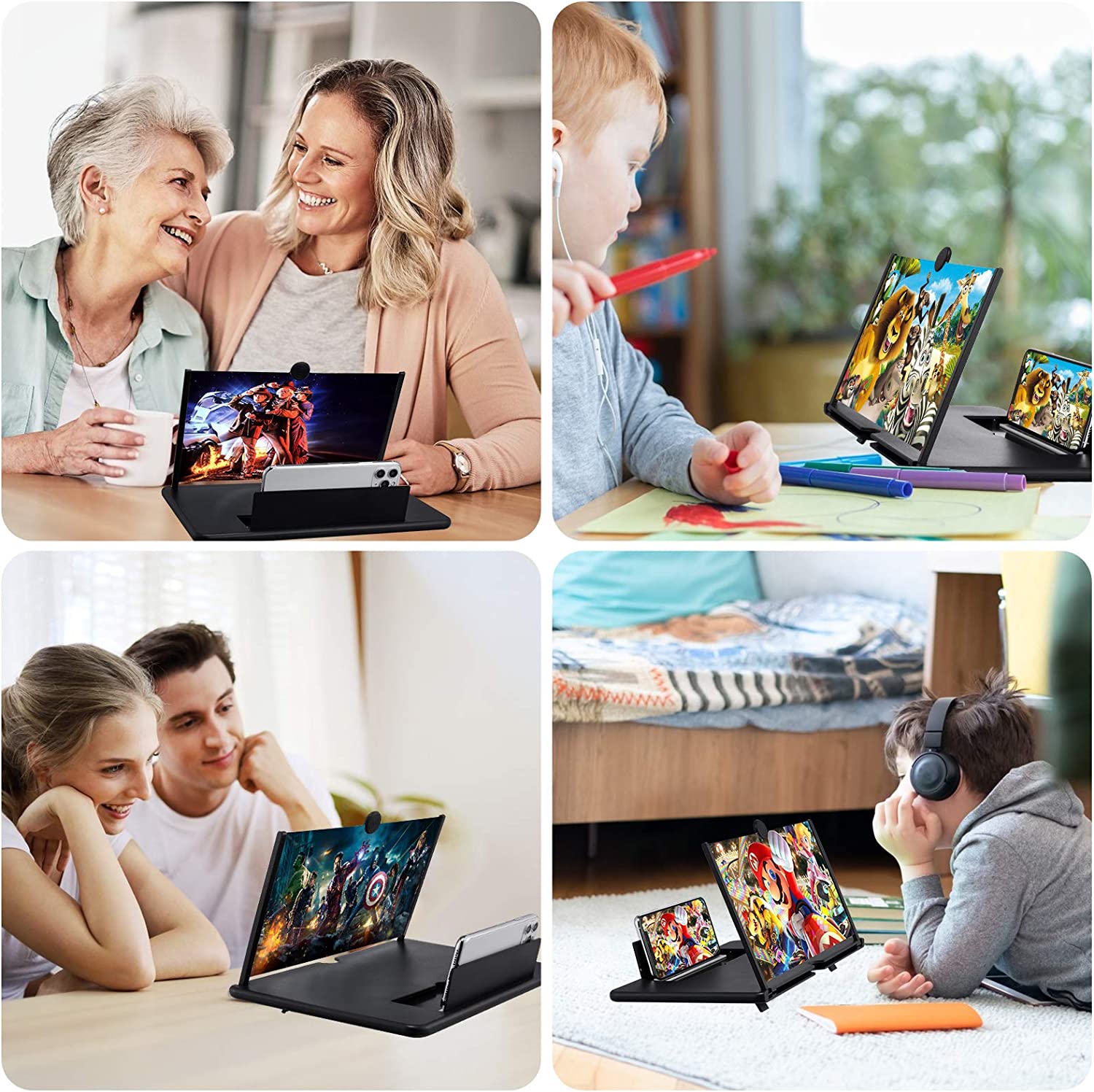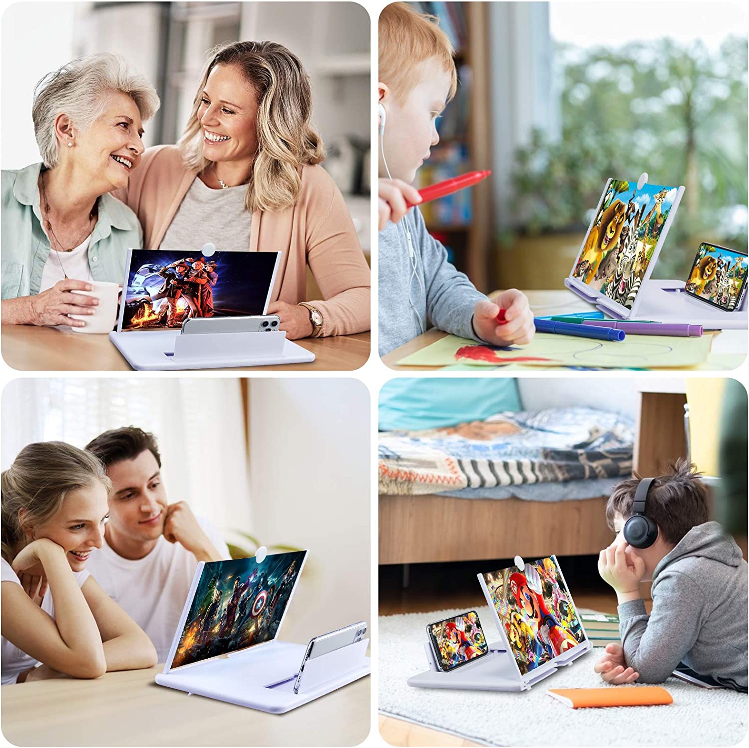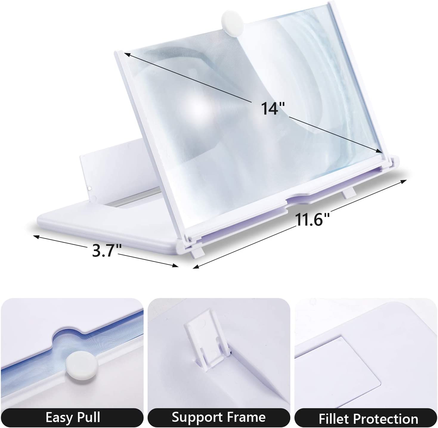 • 【Foldable and Portable Design】 Screen amplifier adopts rotating folding design. If the height is not enough, height can be adjusted with the ring stand. The 3d screen magnifier The lightweight and convenient design allows it to be folded for easy storage when not in use, and can be placed in your bag. It can be used in a variety of situations, including living rooms, bedrooms, kitchens, and outdoor activities.