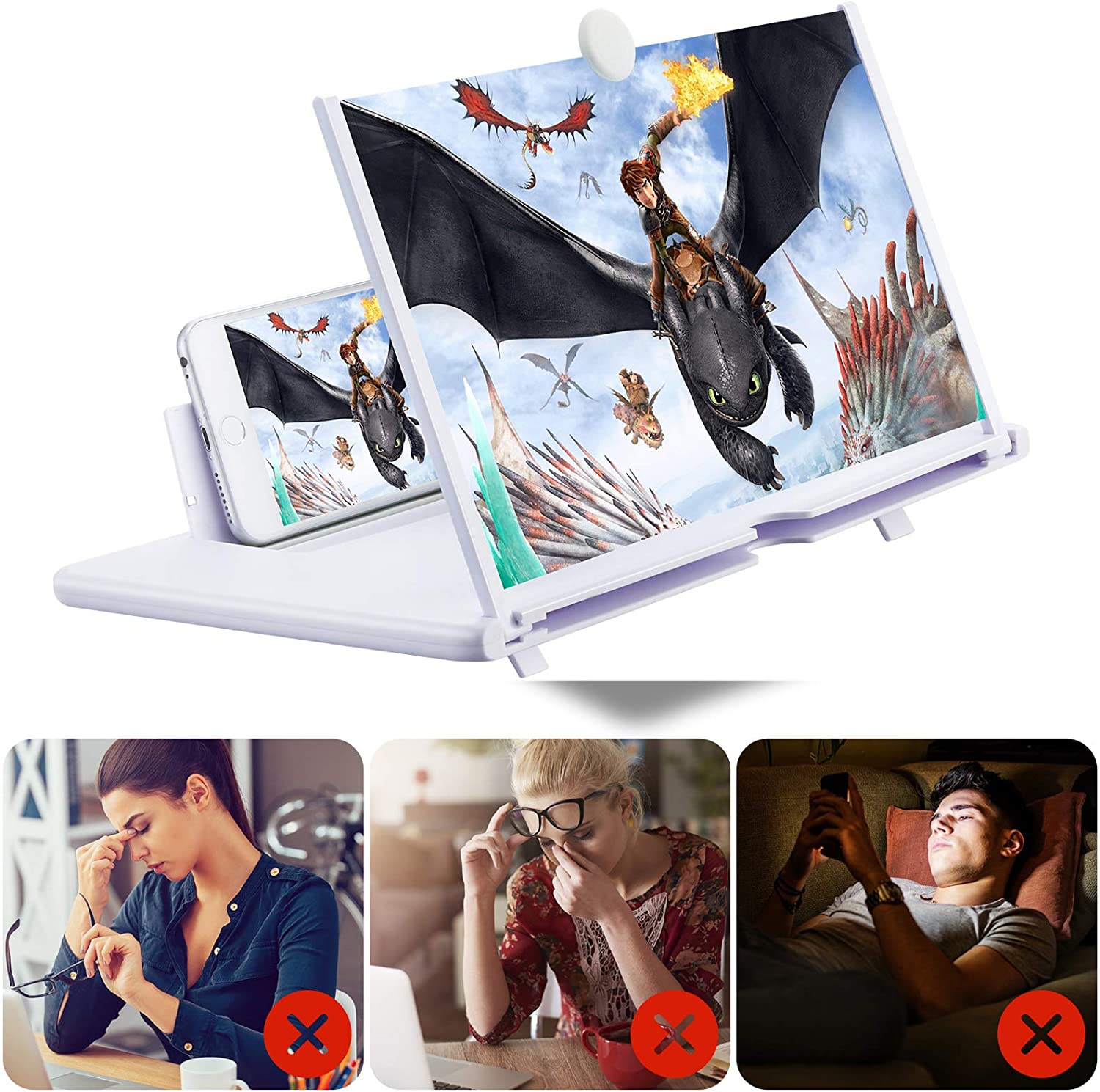 • 【Eye Protection】 The magnifier for cell phone use the HD zoom optical and blue-ray radiation protection technology design to provide high-definition image and reduce visual fatigue, no power. The smobile phone magnifier will reduce the discomfort and visual fatigue caused by long-term focus on the small screen, and can effectively reduce the radiation, perfect for watching movies and gaming