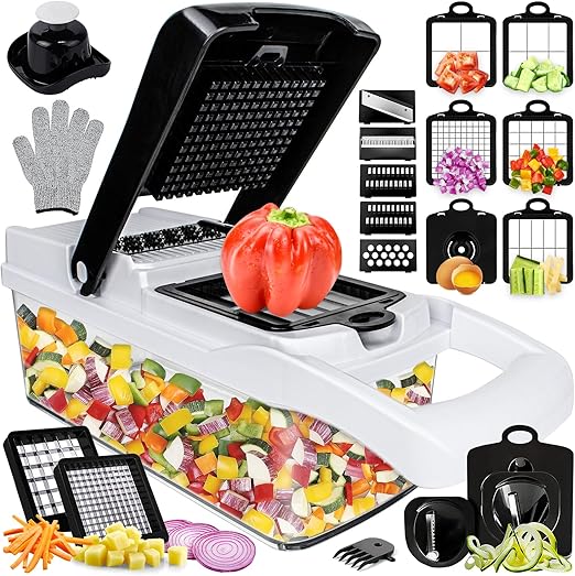 Vegetable Chopper 25 in 1 Multifunction Onion Chopper Dicer, Spiralizer for Veggie Cutter, Mandoline Slicer, Food Chopper with Container, 13 Blades