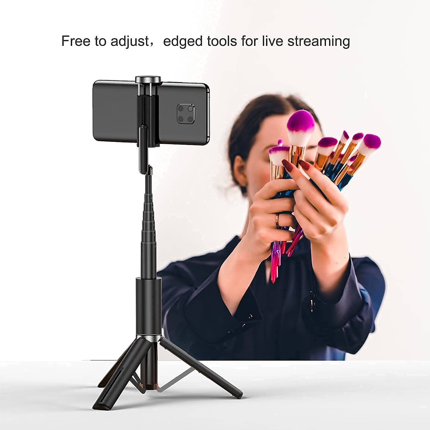 • Multifunctional Selfie Tripod: It can be matched with Phone. The adjustable tripod, and you can lock it to the desired length as needed to achieve perfect shooting. This makes it possible to use it as a foldable tabletop tripod or stand it on the floor.