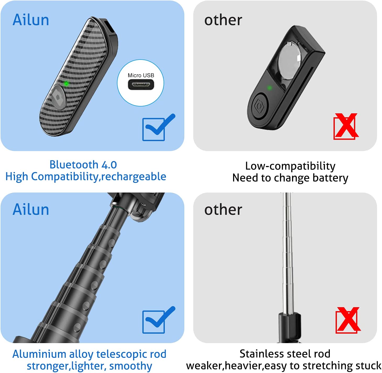 • Multi-Angle For More Possibility: Ailun combines a foldable stabile selfie stick portable stand with a universal phone holder. With Multiple angle rotation , your phone can be oriented at any angle in the horizontal, vertical, or overhead view, ensuring you find the best and beautiful shooting angle. Even in a crowded crowd, now you can capture the beauty and scenery unique to you.